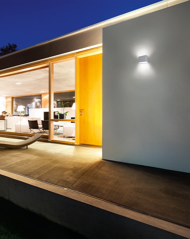 Une applique idéale pour la mise en valeur des façades extérieures avec un éclairage rasant à double faisceau. SOLE est un véritable élément de décoration.