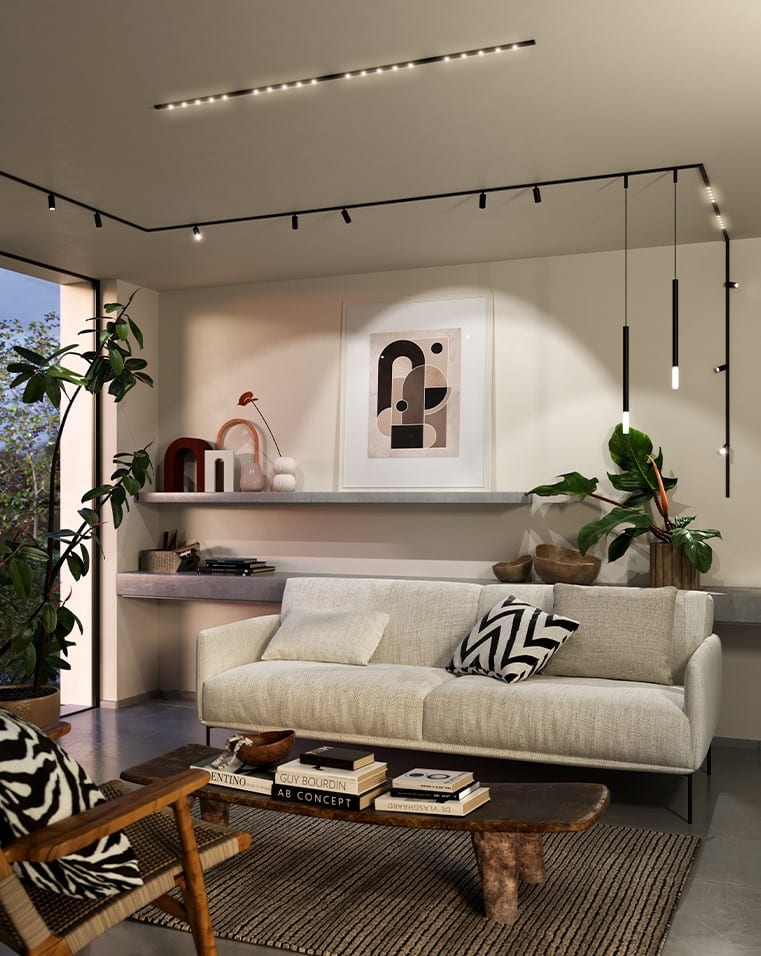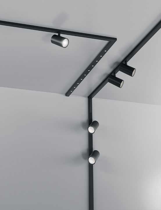 Le rail électrifié devient un véritable système d’éclairage décoratif incroyablement épuré. Le système T-48 MINI est le premier rail 48V Novalux pour une installation en saillie permettant de jouer, sur les plafonds et les murs, avec des compositions de modules LED linéaires avec micro-optiques et mini-spots LED orientables à haut rendu des couleurs. Le résultat est extraordinaire.