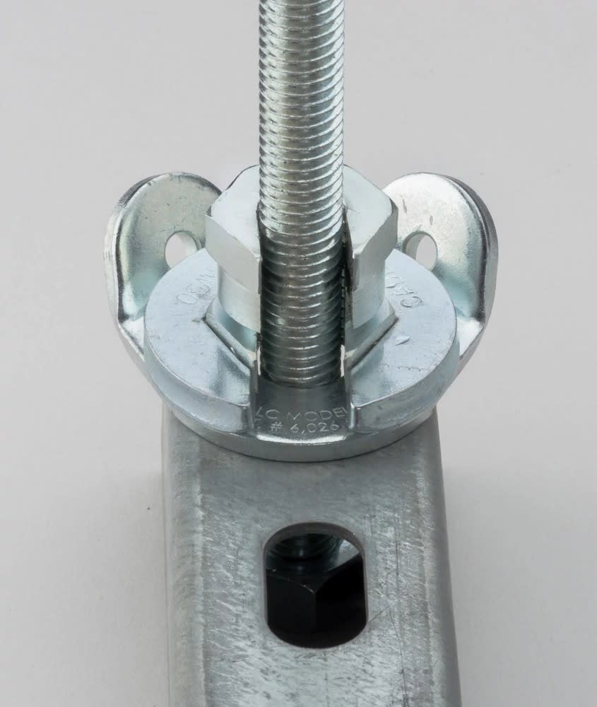 Attache de retenue universelle, avec trous oblongs - La conception avec trous oblongs convient particulièrement à la fixation de tige filetée sur des trapèzes. Approprié pour les installations faites selon CEN/TS 17551:2021.