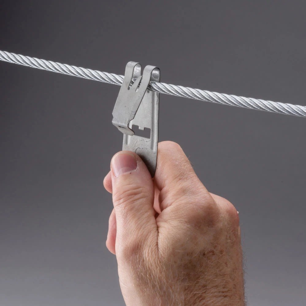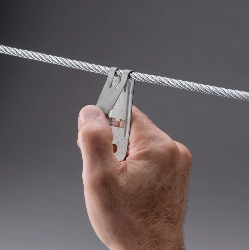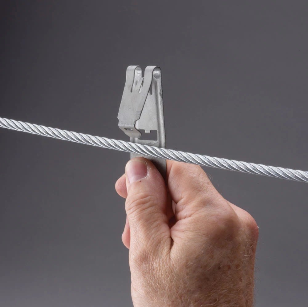 Câble tendu nVent CADDY Speed Link et accessoires de fixation. Charge utile 0-118kg. Facile à installer sur des composants structurels d'un bâtiment éloignés entre eux. Sécurité des personnes renforcée par un temps limité d'installation. Peu d'outillage.