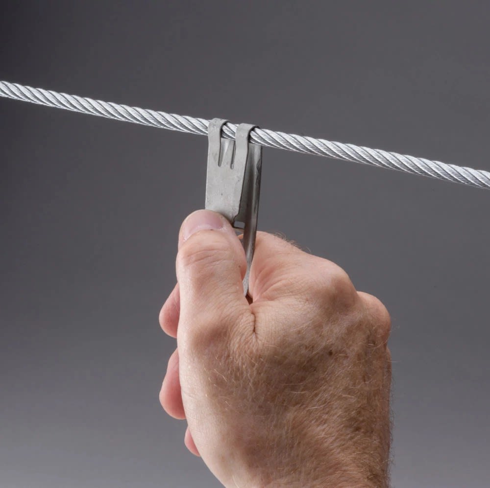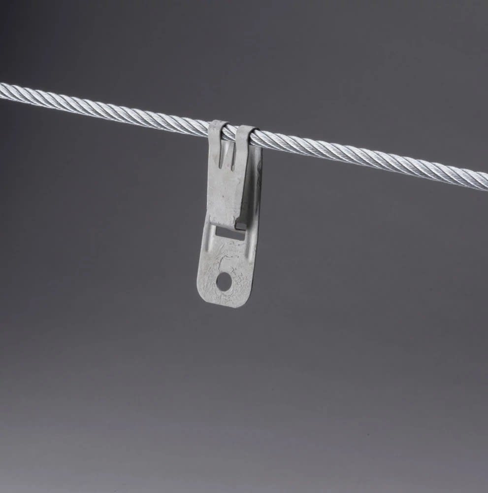 Clip en acier ressort pour câtendu de diamètre 6mm, utilisé pour suspendre les équipements ou faire office de soutien intermédiaire pour réduire l’affaissement et la tension. Charge utilse 70kg.Speed Link
