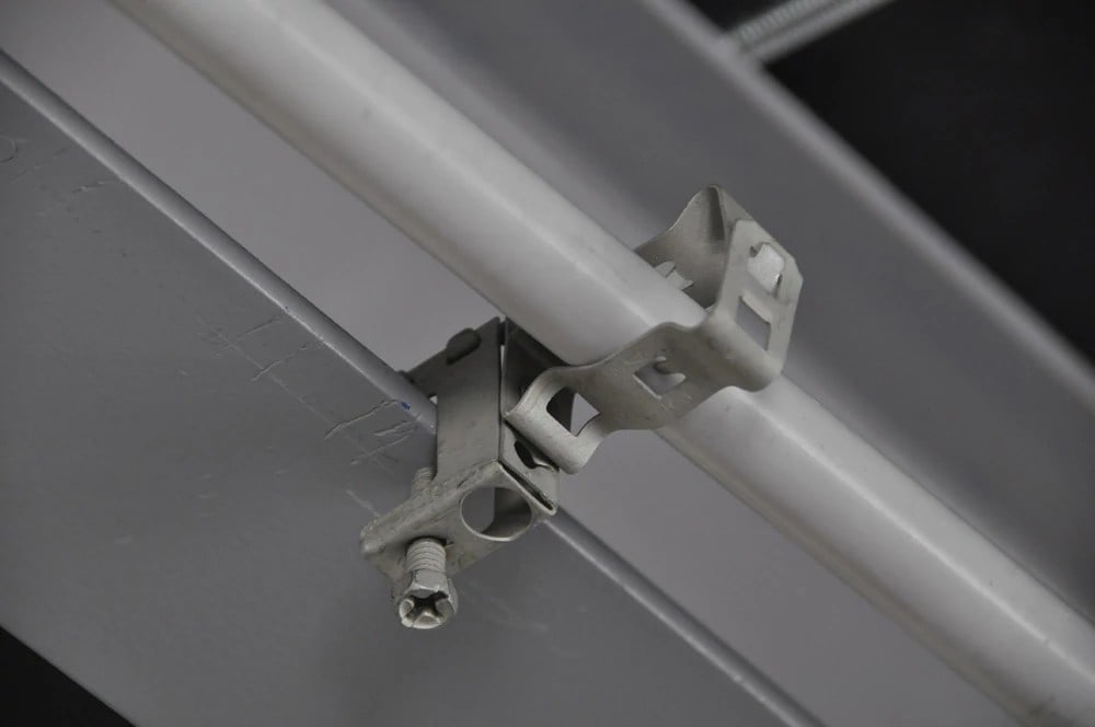 Attache de poutre pour conduit BC-MSM, montage latéral - Installation facile sur les ailes de poutre. Élimine la déformation du conduit que pourrait causer le déport. L’attache de conduit pivote à 360 degrés.