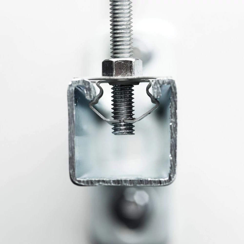 Gamme innovante d'écrous rail rapides acier ressort avec technologie nVent CADDY Rod Lock de "montage par pression". Disponible en M6, M8, M10 et M12, compatible tous profils standard 41mm (41x21,41x41,41x62,41x82). Excellente protection anti-corrosion.
