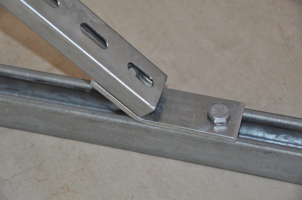Équerre 2 trous à 135° (disposition des trous 1-1) - Permet de créer des bâtis métalliques à l’aide des rails nVent CADDY Eristrut.