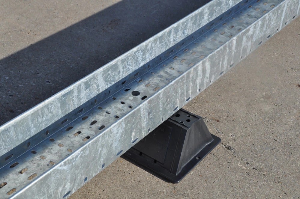 Kit de support sans outil nVent CADDY Pyramid pour chemin de câble - Les vis à clipser s'installent sans aucun outil. Les vis à clipser et l'embase en plastique ne rouilleront pas.