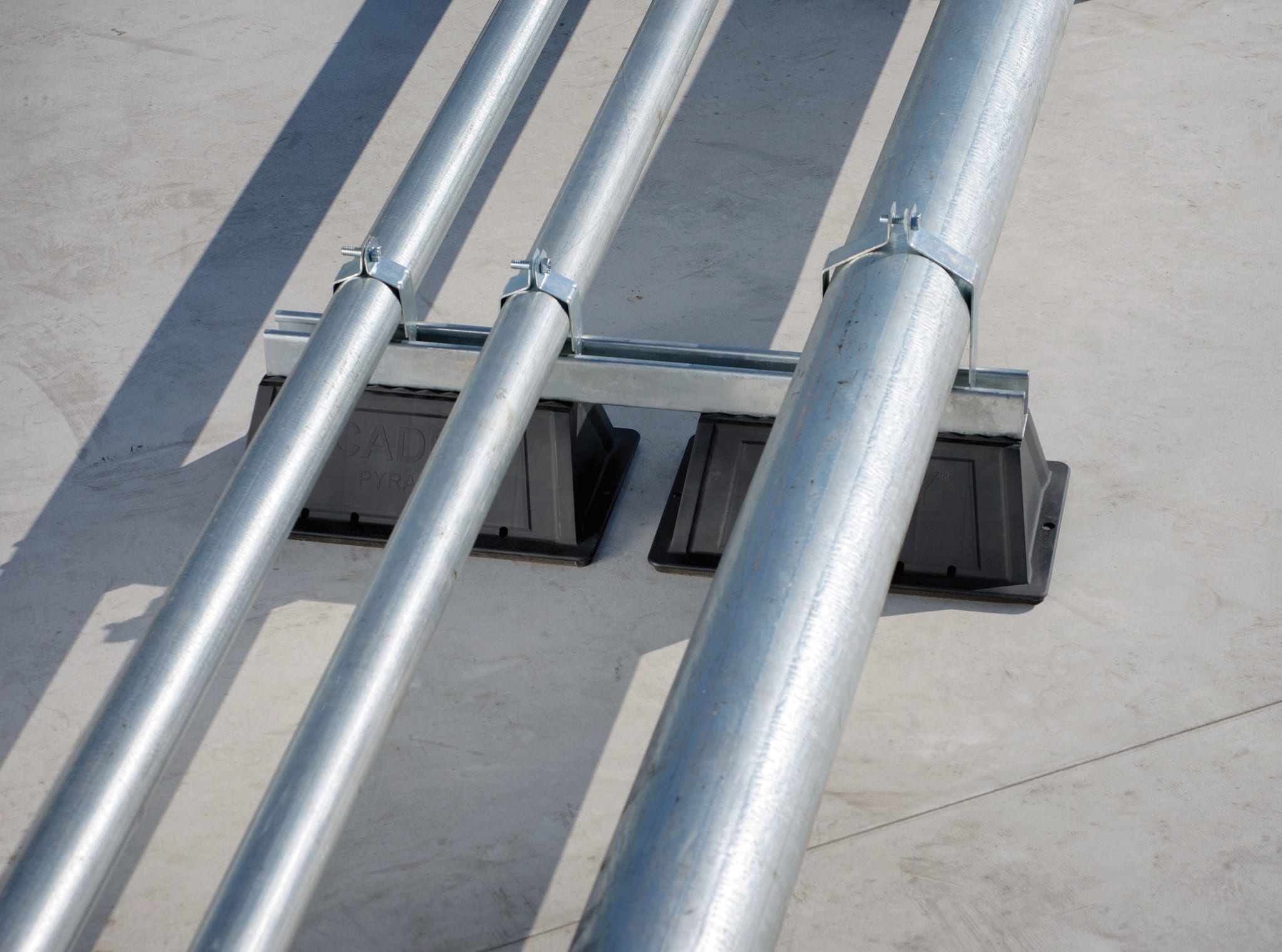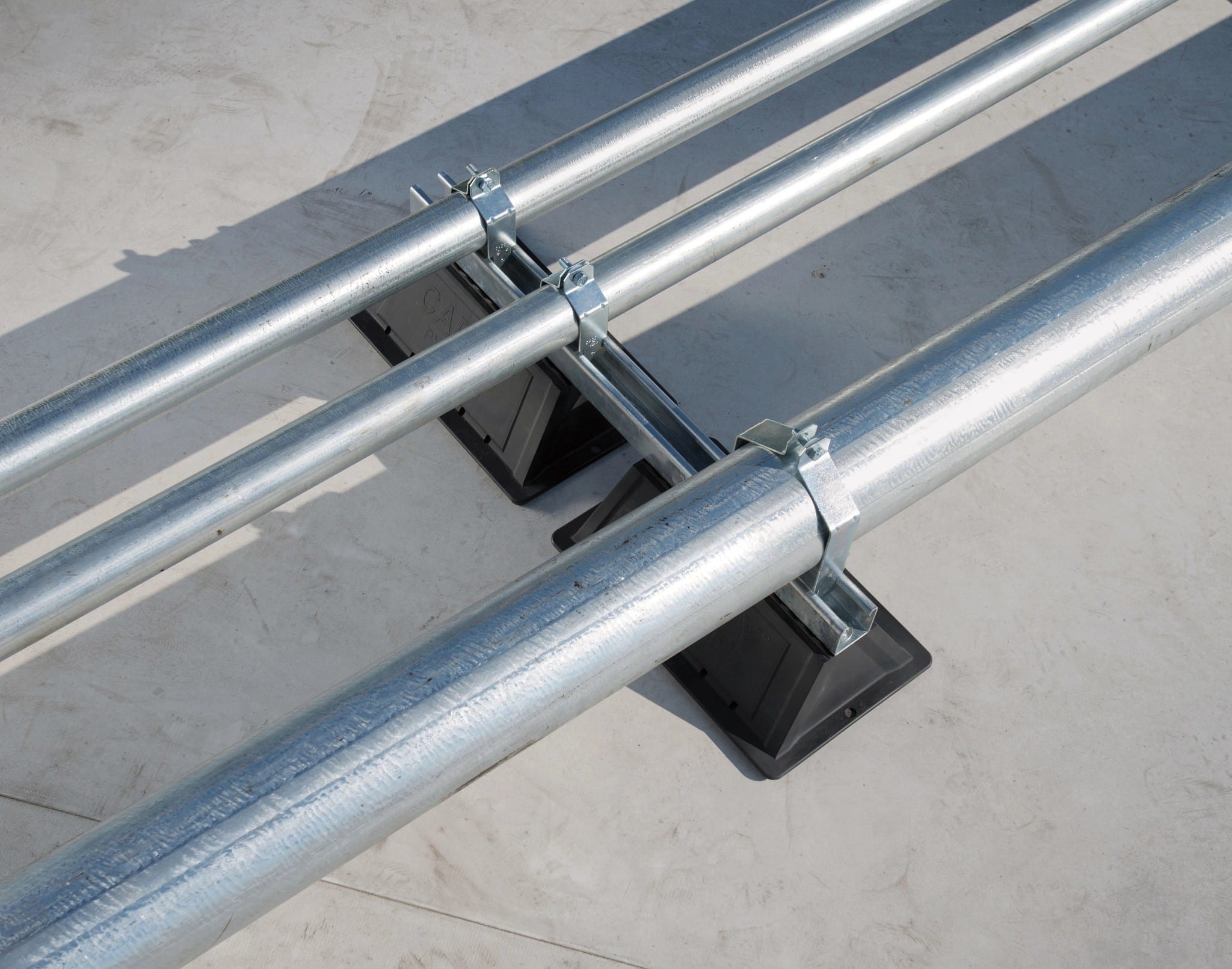 Support de toiture extra large offrant une plateforme de fixation à hauteur fixe depuis la surface du toit avec le profil de montage. Profil en A galvanisé à chaud, 610 mm de long, 142 mm de haut.