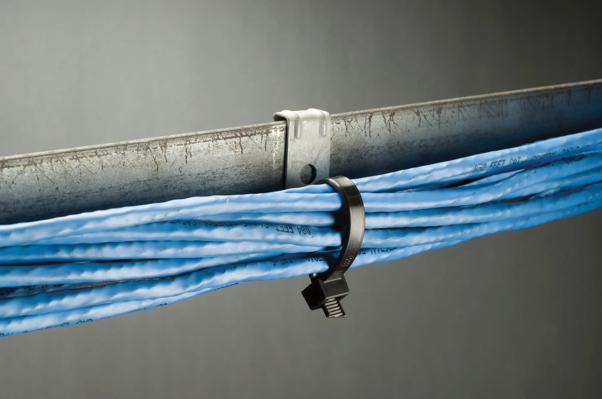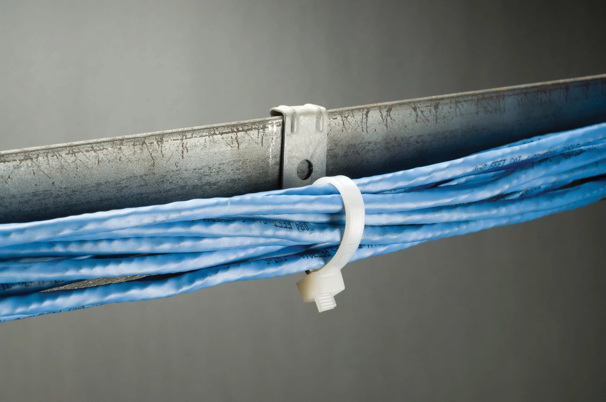 Support de collier serre-câbles J-CT avec attache de panne en « C » - Sert à supporter les câbles depuis une panne en C. Ne nécessite qu’un marteau pour l’installation.
