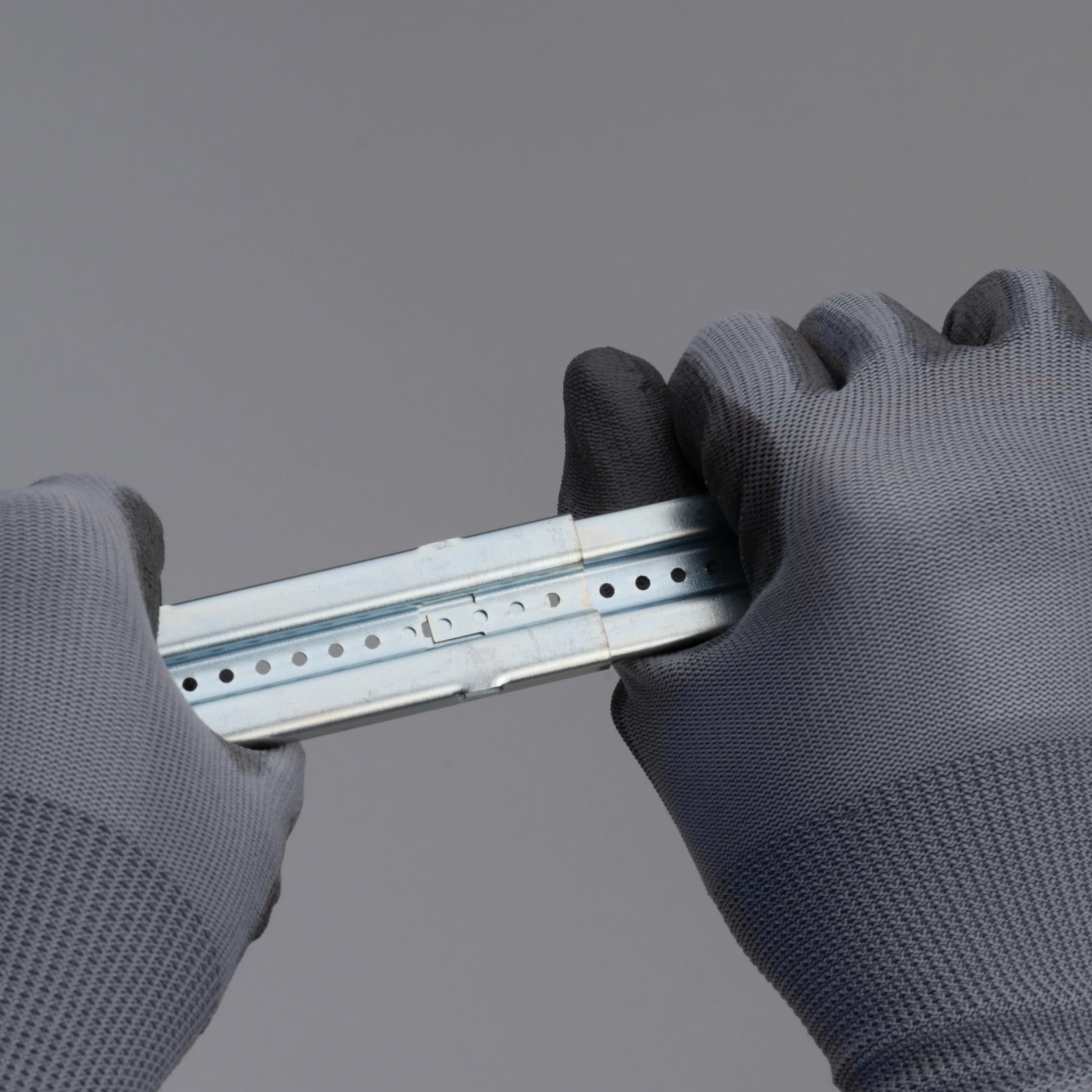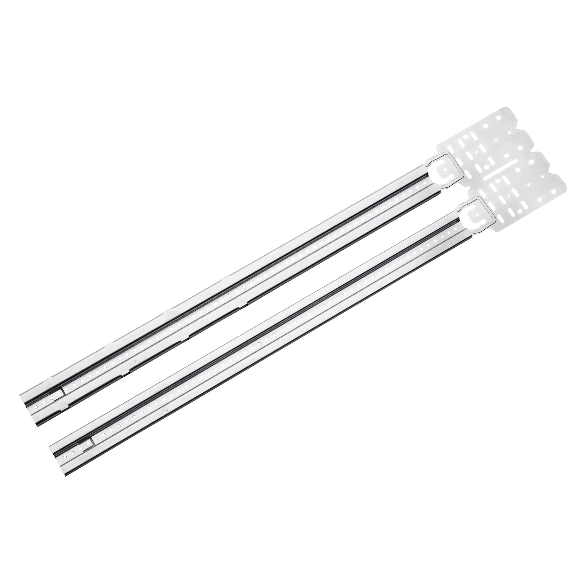 Supports polyvalents et robustes conçus pour fixer solidement des boîtiers électriques de 25, 35 et 47 mm de profondeur aux ossatures de cloison, Support télescopique pour boîtier électrique, espacement entre rails de 355-655 mm.