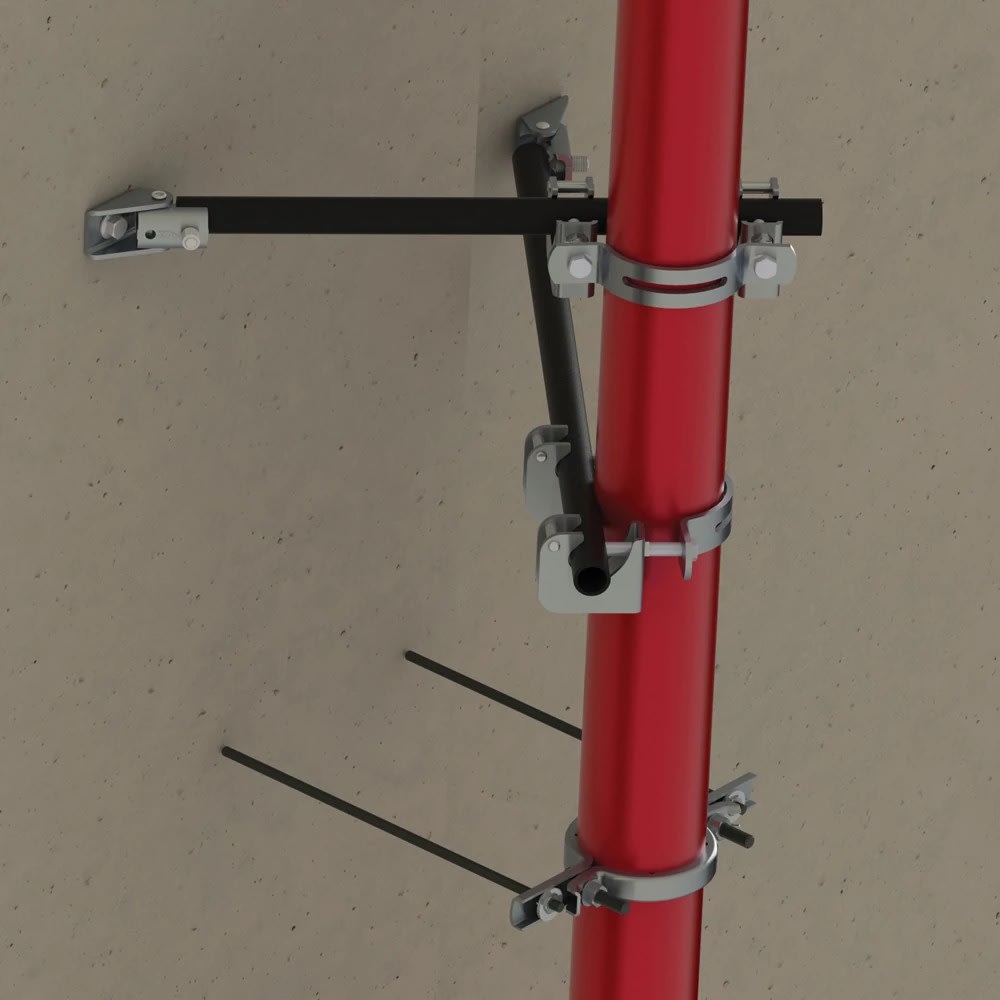 Système de fixation latéral renforcé à fixation rapide - Issue de la gamme de systèmes de renforts parasismiques nVent CADDY pour gicleurs d’incendie Pentair, le système de fixation latéral renforcé à fixation rapide est conçu pour simplifi