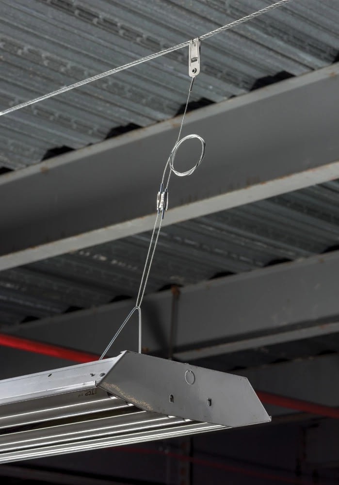 Câble tendu nVent CADDY Speed Link et accessoires de fixation. Charge utile 0-118kg. Facile à installer sur des composants structurels d'un bâtiment éloignés entre eux. Sécurité des personnes renforcée par un temps limité d'installation. Peu d'outillage.