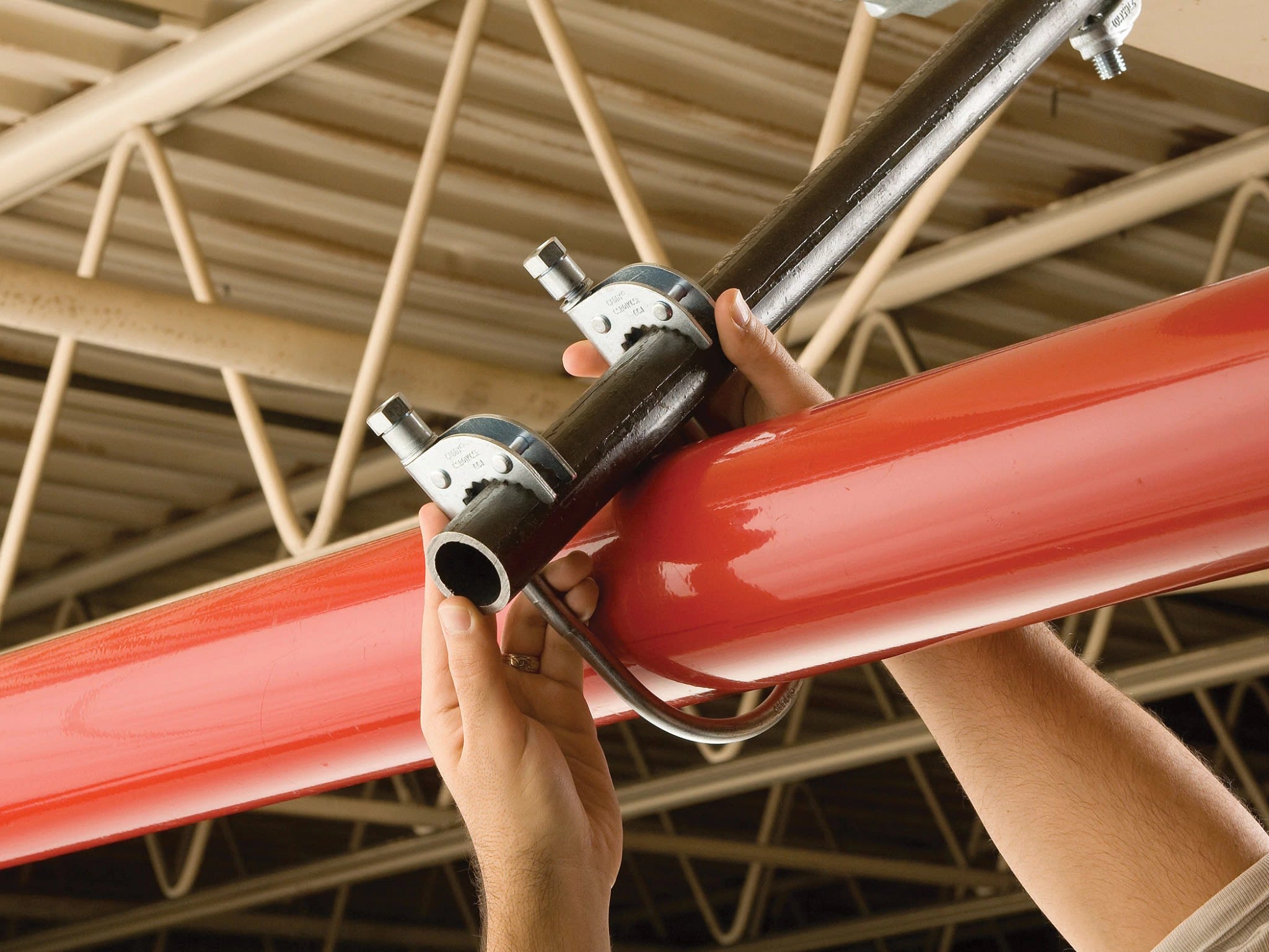 Système Jr. de fixation latéral renforcé à fixation rapide - L’installation facile en deux phases permet de limiter les déplacements entre la structure et le tuyau à supporter.