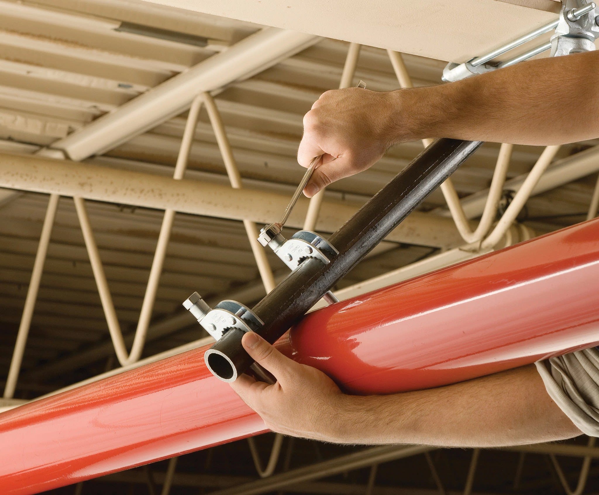 Système Jr. de fixation latéral renforcé à fixation rapide - L’installation facile en deux phases permet de limiter les déplacements entre la structure et le tuyau à supporter.