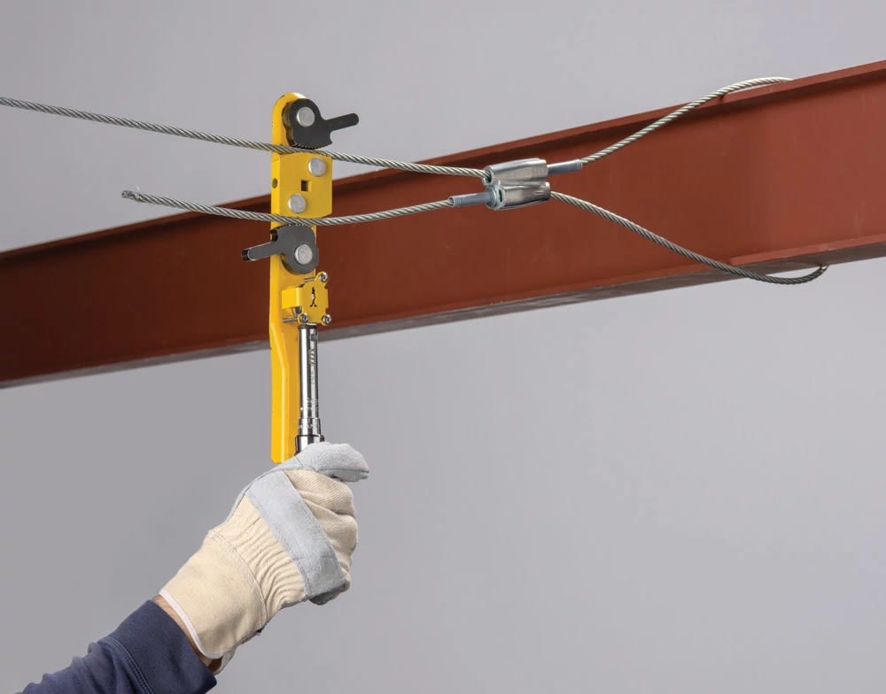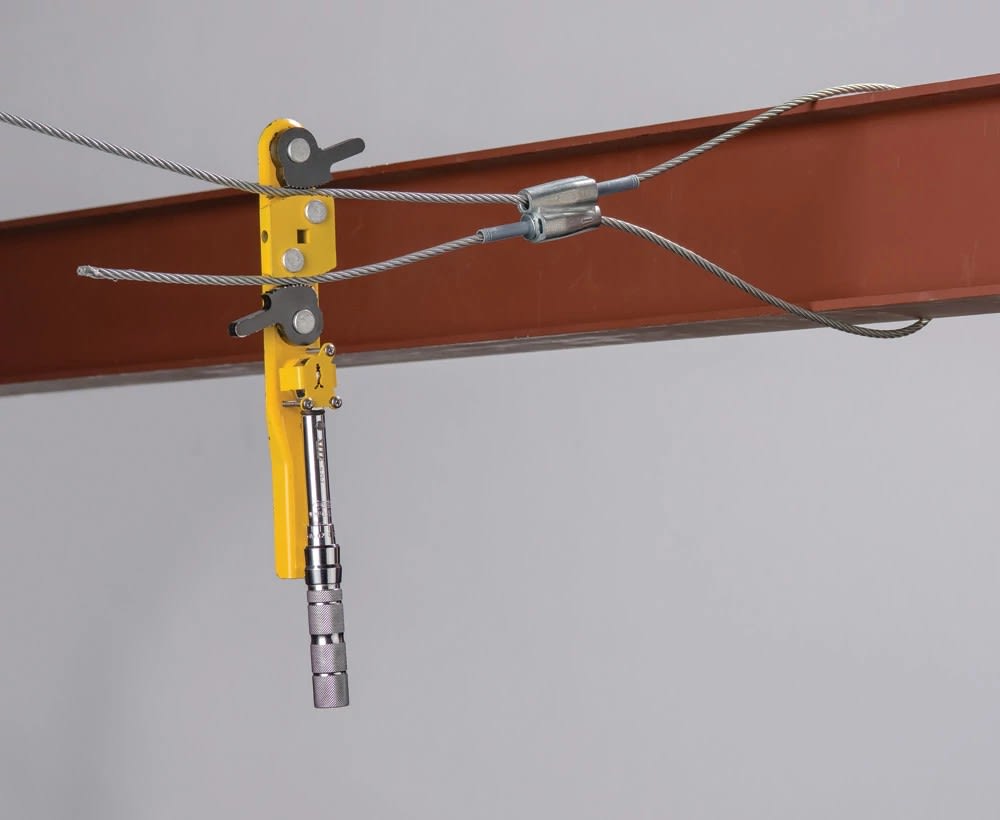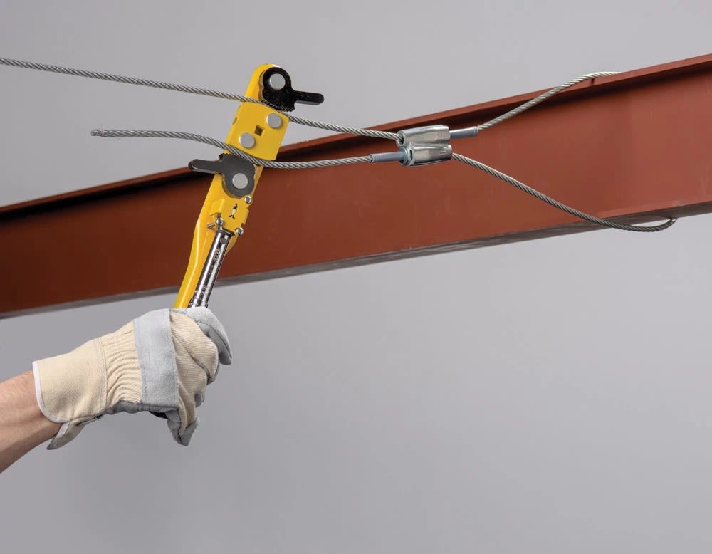Câble tendu nVent CADDY Speed Link et accessoires de fixation. Charge utile 0-118kg. Facile à installer sur des composants structurels d'un bâtiment éloignés entre eux. Sécurité des personnes renforcée par un temps limité d'installation. Peu d'outillage.