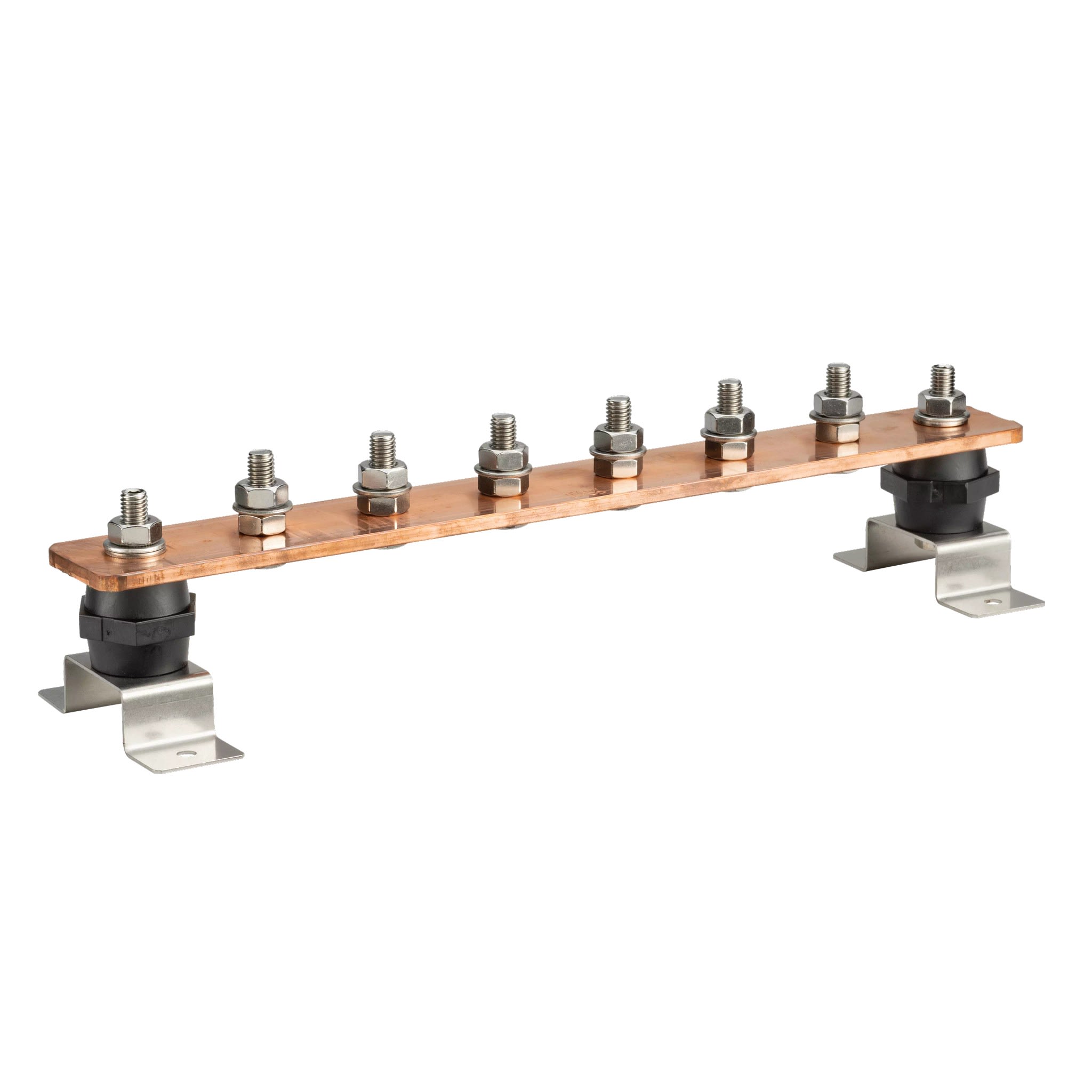 Point de mise à la terre commun pour plusieurs panneaux et dispositifs électriques. Comprend des isolants en polyamide sans halogène, du matériel en acier inoxydable (EN 1.4401) et des supports de fixation.