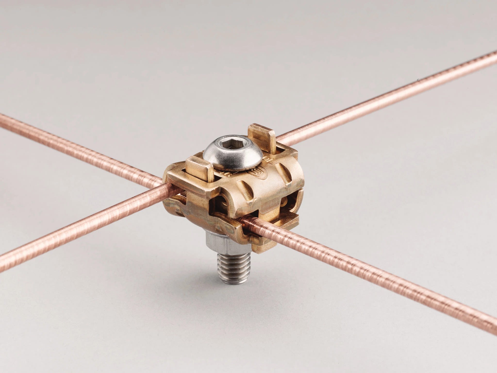 Permet une connexion rapide, simple et économique des fils de mise à la terre et de liaison. Il peut accueillir des fibres amorces supplémentaires qui peuvent être utilisées pour se connecter à l’acier et à l’équipement du bâtiment.