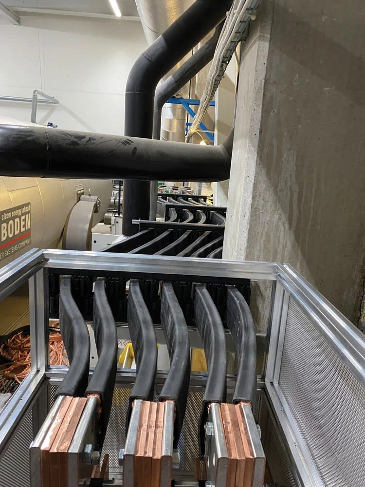 Le conducteur nVent ERIFLEX FleXbus dispose d'une plage prêt à l’emploi d’un côté, pour une connexion directe sur l’appareillage ou le jeu de barre du TGBT. 545 mm², 9 000 mm x 25 mm x 12,5 mm x 23,3 kg.