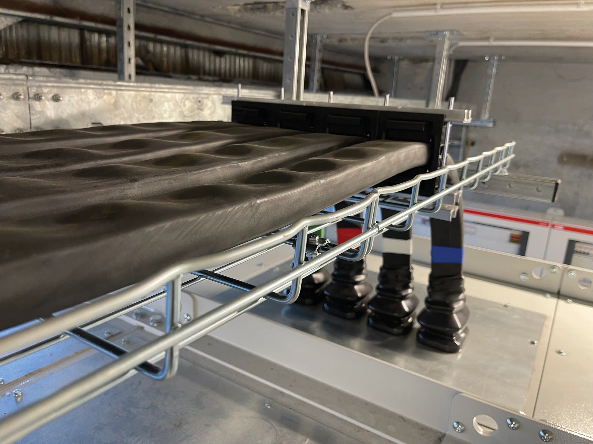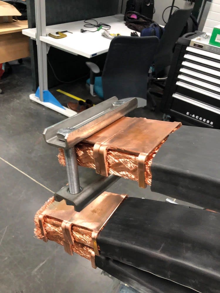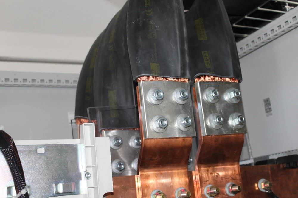 Le conducteur nVent ERIFLEX FleXbus dispose d'une plage prêt à l’emploi d’un côté, pour une connexion directe sur l’appareillage ou le jeu de barre du TGBT. 640 mm², 9 000 mm x 25 mm x 25 mm x 12,5 mm x 26,5 kg.