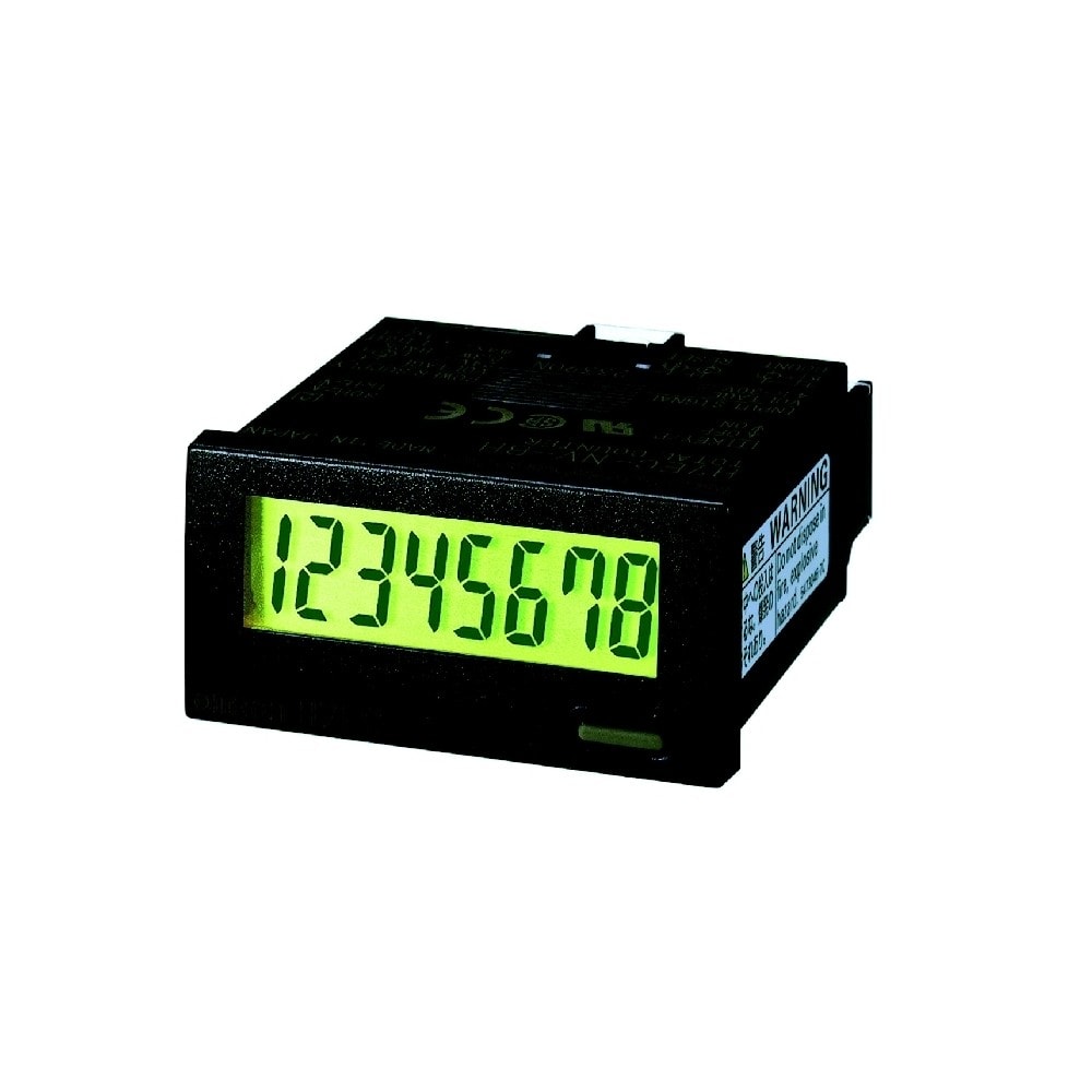 La série H7E est disponible avec un large écran affichant des caractères de 8,6 mm de haut. Elle inclut des modèles avec rétro-éclairage pour une meilleure visibilité dans les endroits faiblement éclairé. La famille H7E inclut des compteurs totalisateurs, des compteurs de temps, des tachymètres et des compteurs montés sur circuit imprimé.H 24 x L 48 x P 48,5 mm5 chiffres, 8,6 mm de hauteur de caractèreBoîtier noir ou gris clairAffichage à double révolution