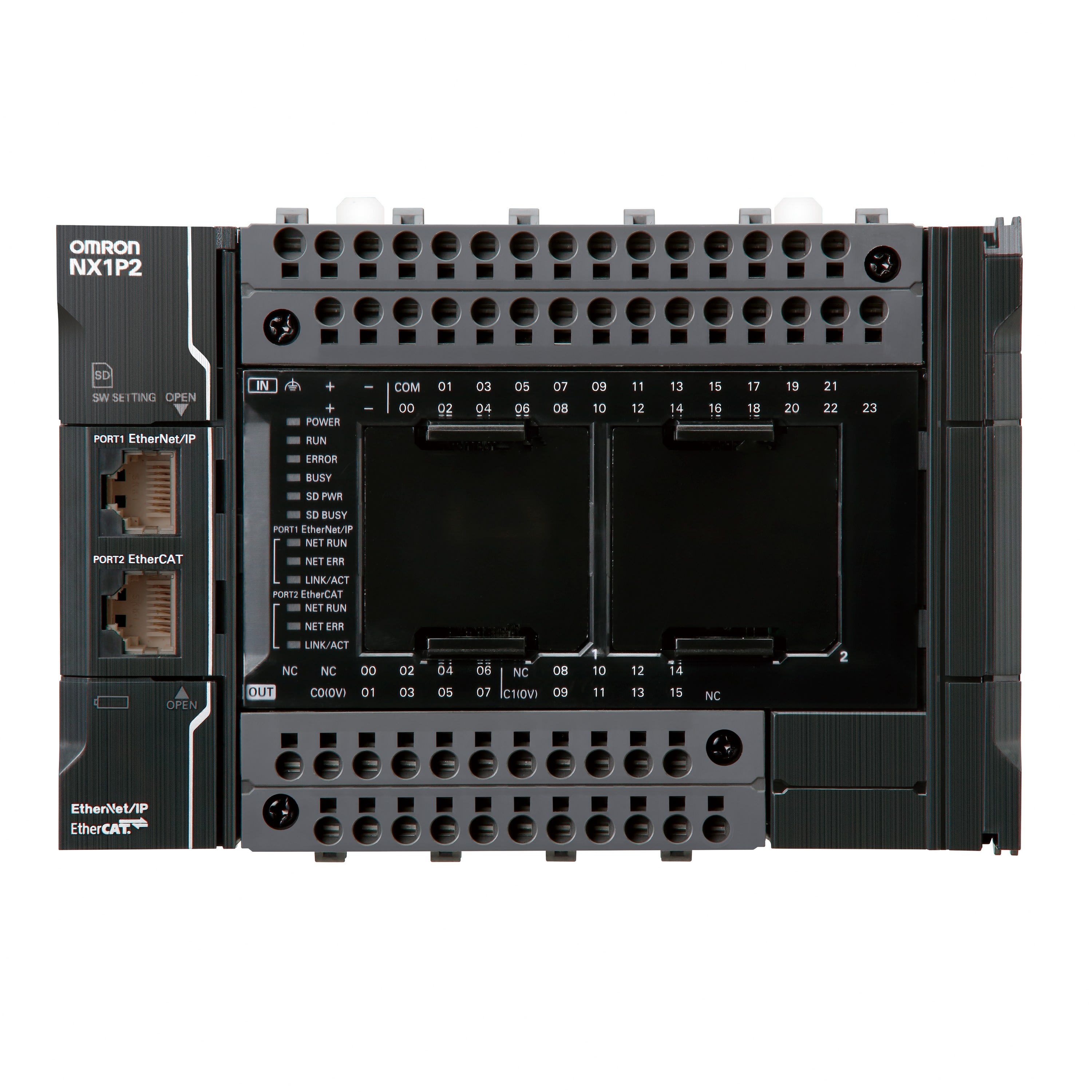 Le NX1P vient compléter la gamme de contrôleurs de machines NX/NJ en offrant les mêmes fonctionnalités en un design compact. Le NX1P offre un contrôle synchronisé de tous les périphériques de la machine, tels que le mouvement, les E/S, la sécurité et la vision, dans un seul environnement de développement.Temps de cycle machine très rapide : 2 msFonctionnalités : séquence logique et contrôle d'axesJusqu'à 8 axes (4 axes synchronisés)Points d'E/S intégrés : 40 ou 24 points d'E/SJusqu'à 8 cartes E/S NX localesPorts EtherCAT et EtherNet/IP intégrésJusqu'à 16 esclaves EtherCATJusqu'à 2 cartes en option peuvent être connectées pour ajouter des communications série ou des fonctionnalités d'E/S analogiques La topologie EtherCAT en anneau est prise en charge afin de maintenir les communications et les contrôles en cas de rupture de câble ou de panne de périphérique
