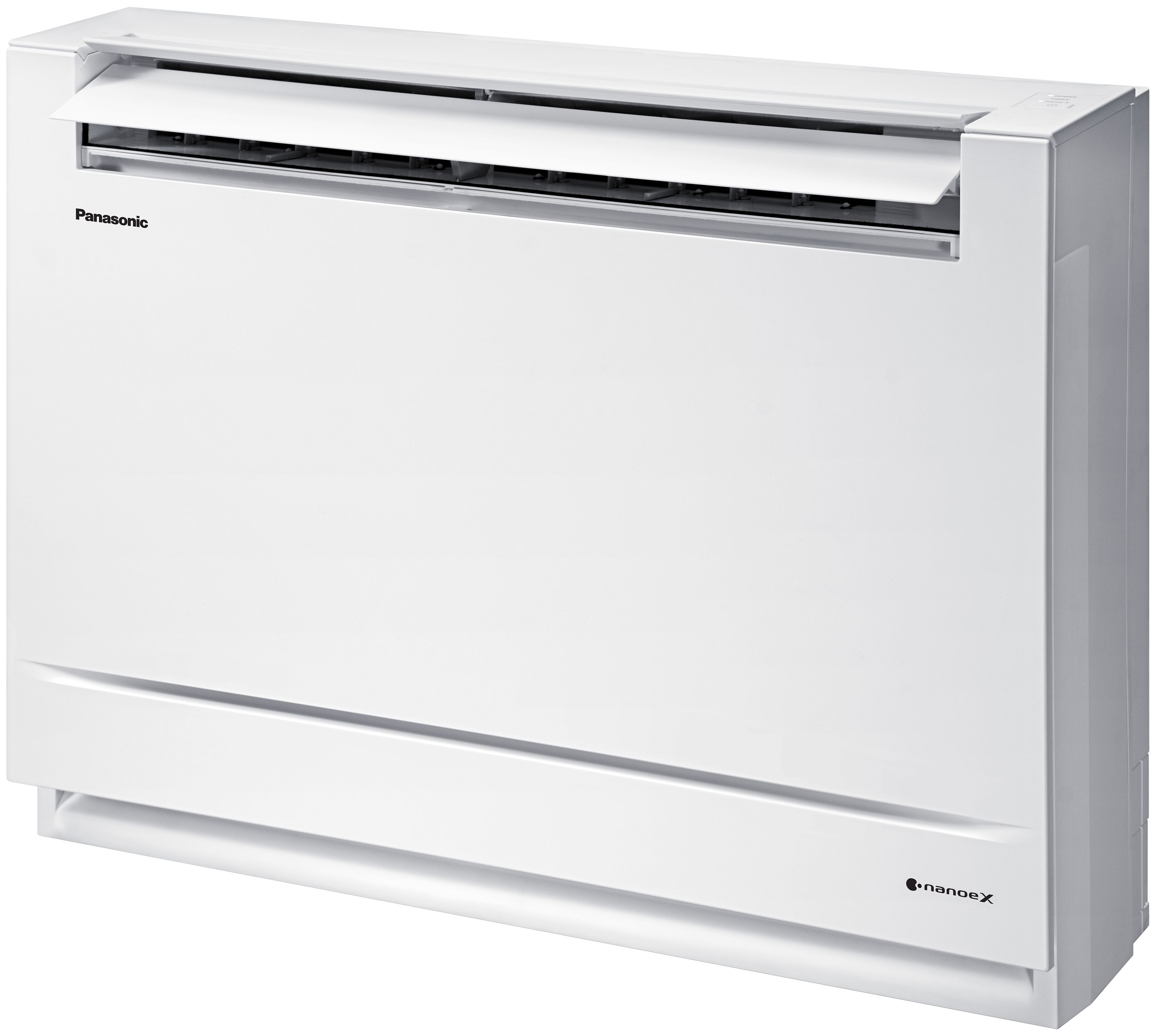Console de type G1 · R410ALe profil élégant et compact de l’unité, également utilisée pour la gamme résidentielle, s’intègre facilement à tous les intérieurs.Compact et polyvalent, ce système peut être installé dans une zone où l’espace est limité. C’est la solution idéale pour la rénovation, en remplacement de radiateur existants. Elle est également dotée de la technologie nanoe™ X de Panasonic.