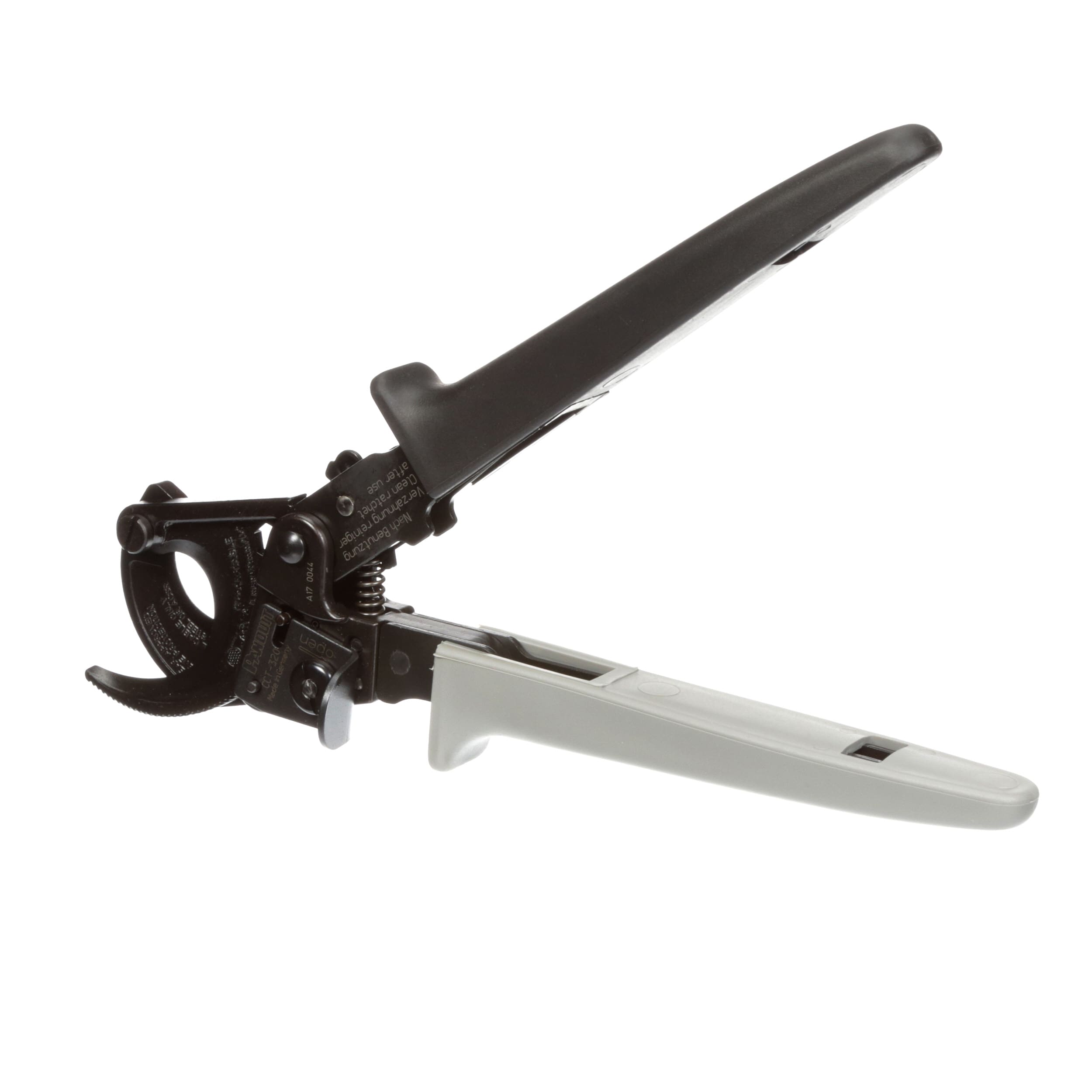 Cliquet câble outil de coupe cuivre et aluminium monobrin coupes câbles code (Al câble à 600MCM 500MCM cube et câble) de 1/4 "à 1 (6 millimeter)" (25 millimeter) et multibrins Flex câbles de 1/4 "(6 millimeter) à 1-1/4" Diamètre (32 millimeter). Dimensions approximatives (95 millimeter) x 10 "(254 millimeter) x 3-3/4" 1" (25,4 millimeter). Poids 21 oz outil. (600 g)