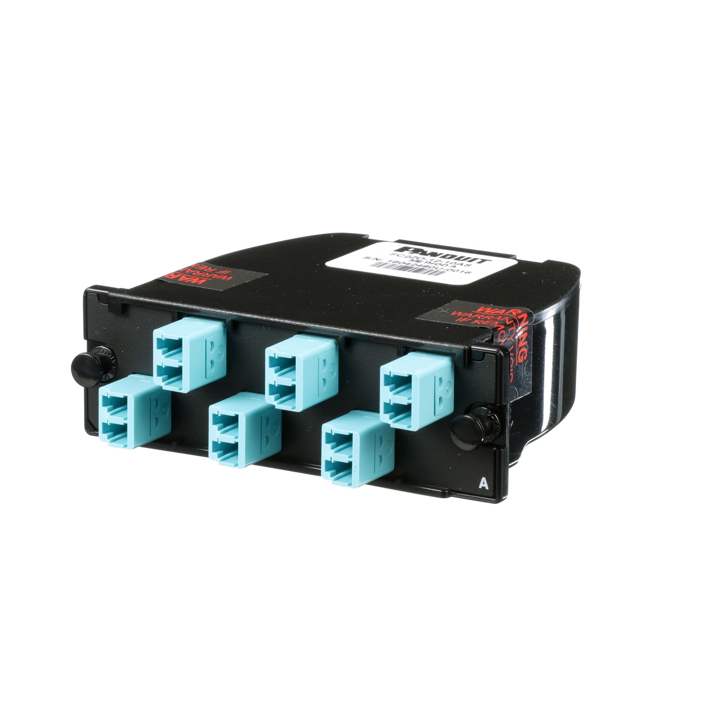 La cassettes pour fibre OptiCom™ est une cassette OM4 1 MPO vers 6 duplex LC et prend en charge 12 fibres au total. Elle dispose d'une perte d'insertion optimisée et utilise la polarité de méthode standard A. La cassette dispose d'un capot noir avec un connecteur MPO noir et de 6 adaptateurs LC de coloris Aqua.