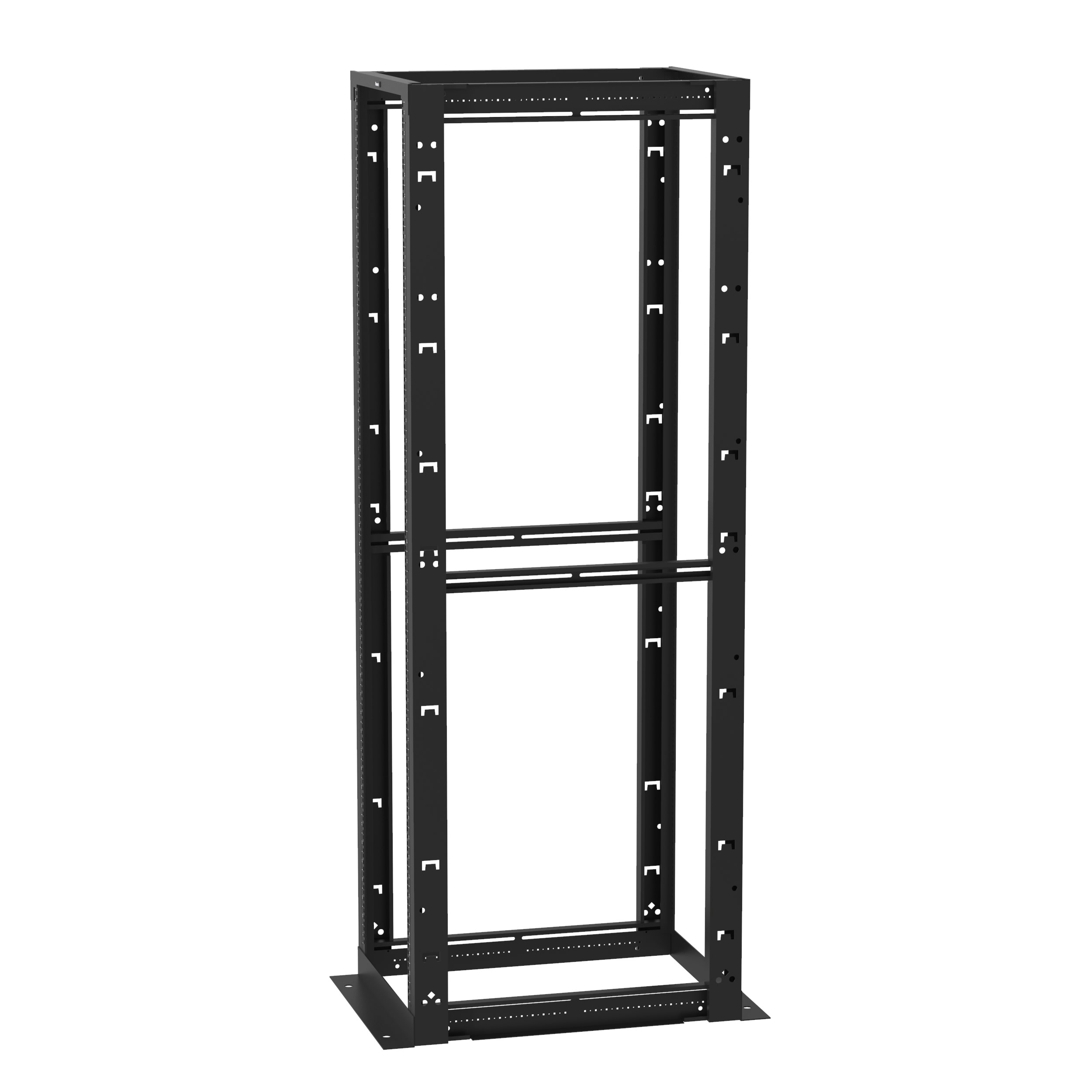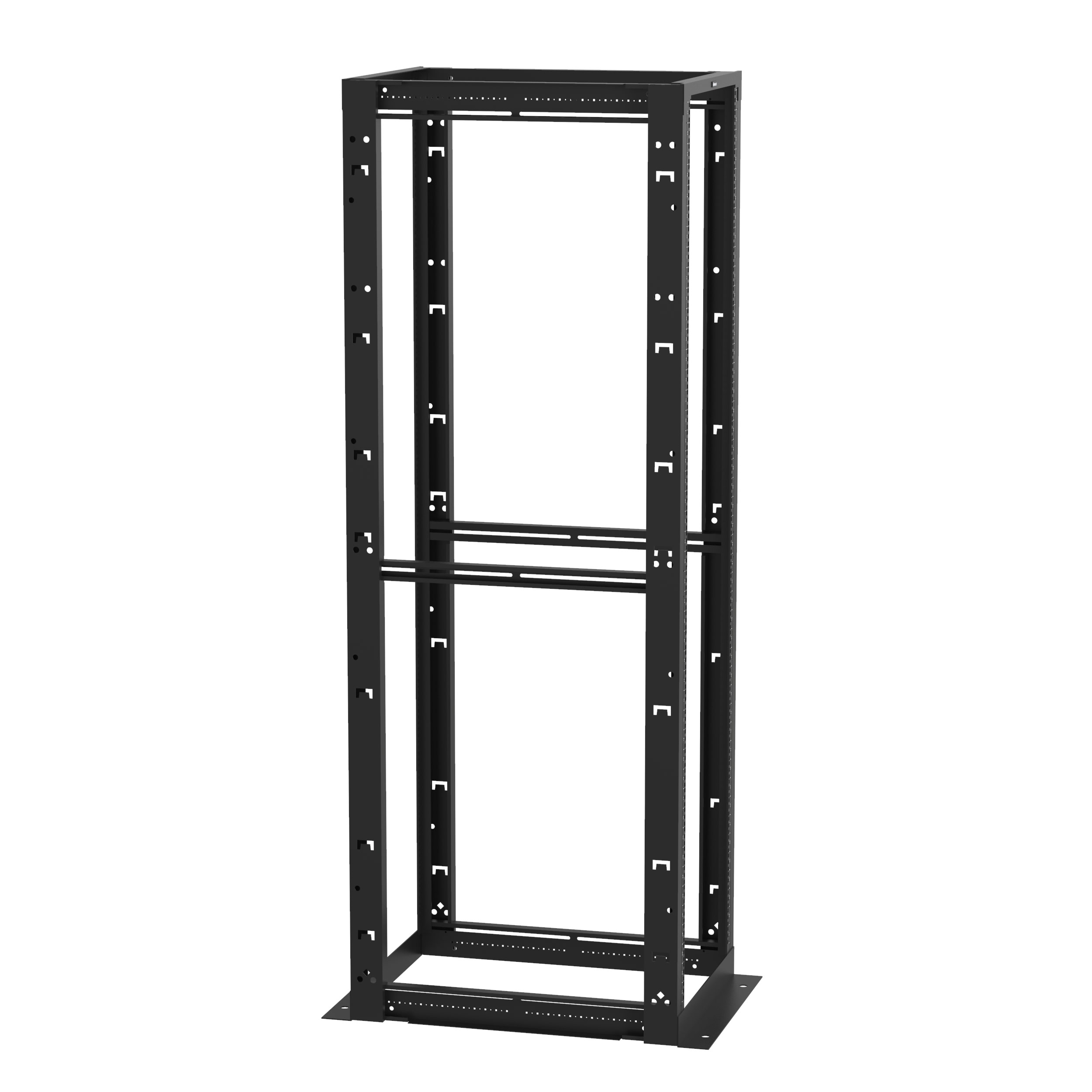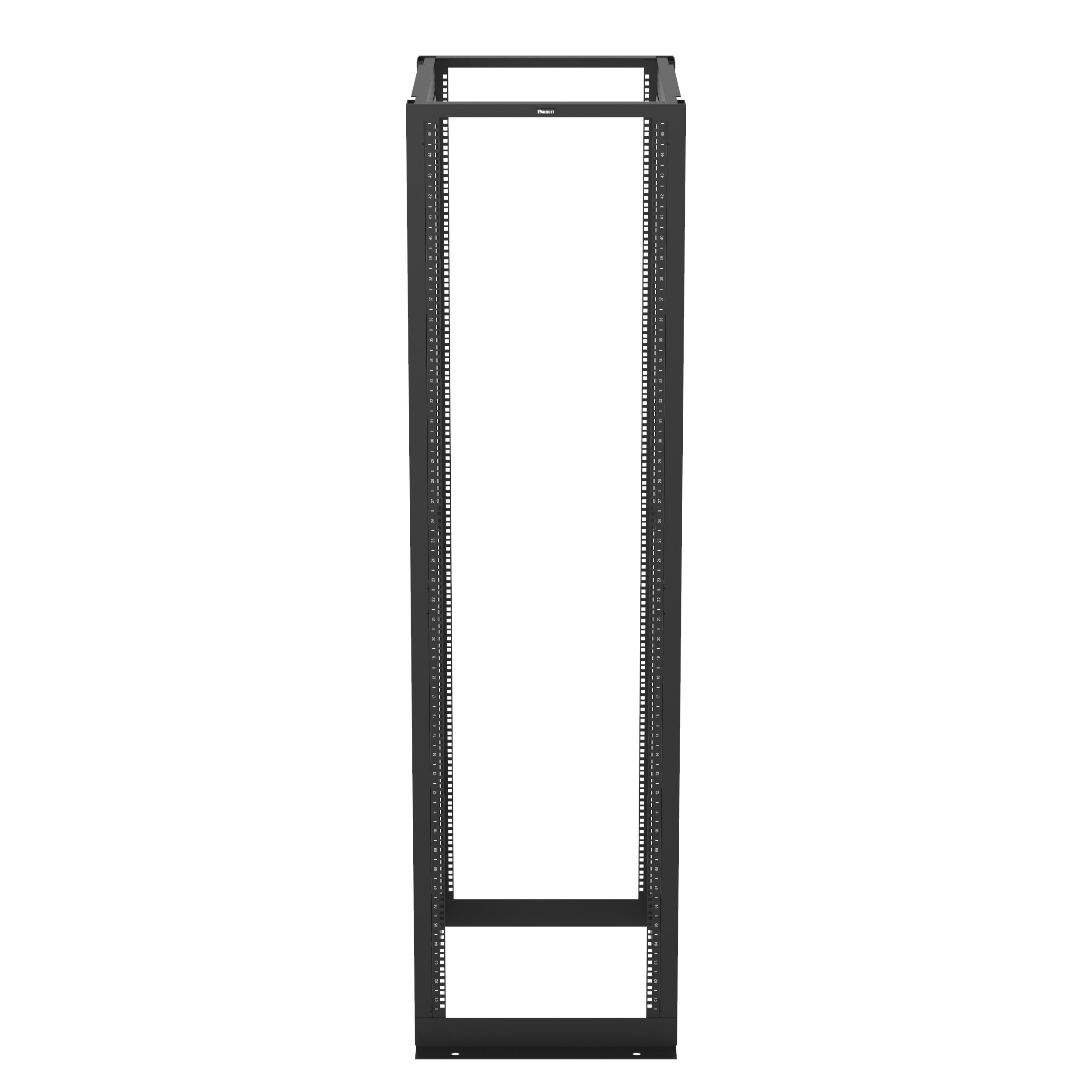 Le rack à 4 montants allie la stabilité d'une armoire avec l'accessibilité d'un rack ouvert pour une flexibilité maximale. Le rack de 45 U mesure 58,42 cm de large (avec montage standard EIA de 48,3 cm) et 76,2 cm de profondeur. Ses rails de montage réglables ont des écrous-cage avec espacement universel EIA et numérotation imprimée. Divers guide-câbles et accessoires compatibles. Le rack est listé UL pour 1 134 kg et est fabriqué en acier soudé. Coloris du rack : noir.