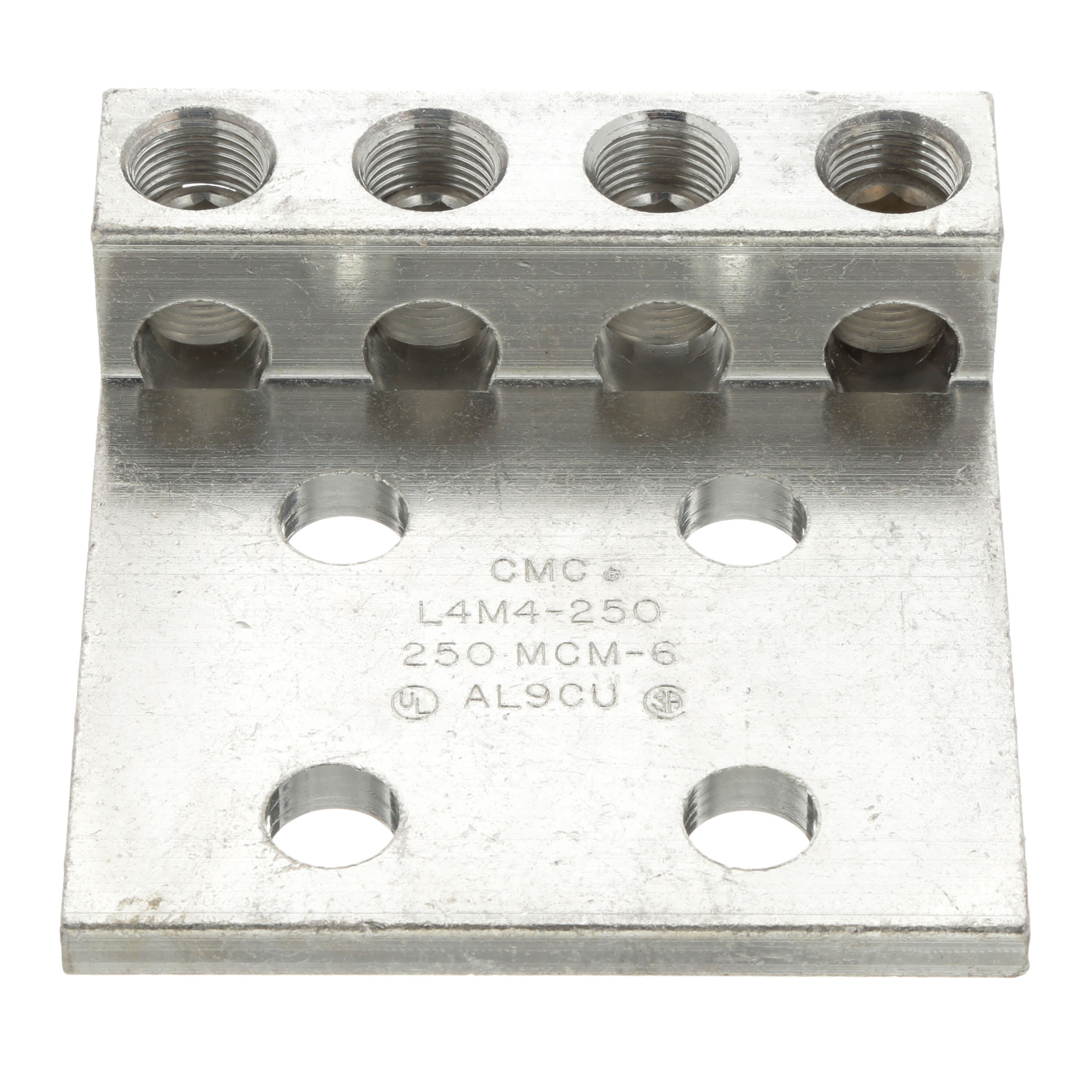 Cosse en aluminium à quatre trous et quatre fûts, type LAM4D, dimensions et espacement de trou NEMA, #6 AWG - 250 kcmil, trou de goujon 1/2 (12,7 mm).