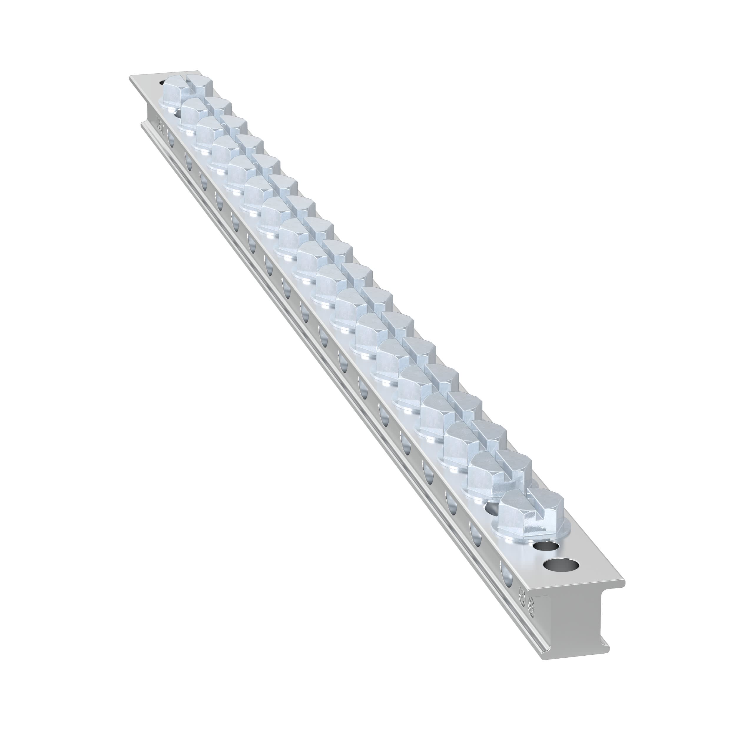 La barre de mise à la terre universelle UGB2/0-414-18 permet de raccorder le conducteur de mise à la terre de l'équipement principal à l'aide d'un connecteur à compression ou mécanique sur tous les panneaux de commande ou boîtiers. Elle peut accueillir un fil 14-4 AWG dans ses 18 ports et un conducteur de mise à la terre de l'équipement principal allant jusqu'à 2/0 AWG. Plusieurs options de montage possibles (entretoises de mise à la masse, entretoises d'isolation et montage direct sur panneau).
