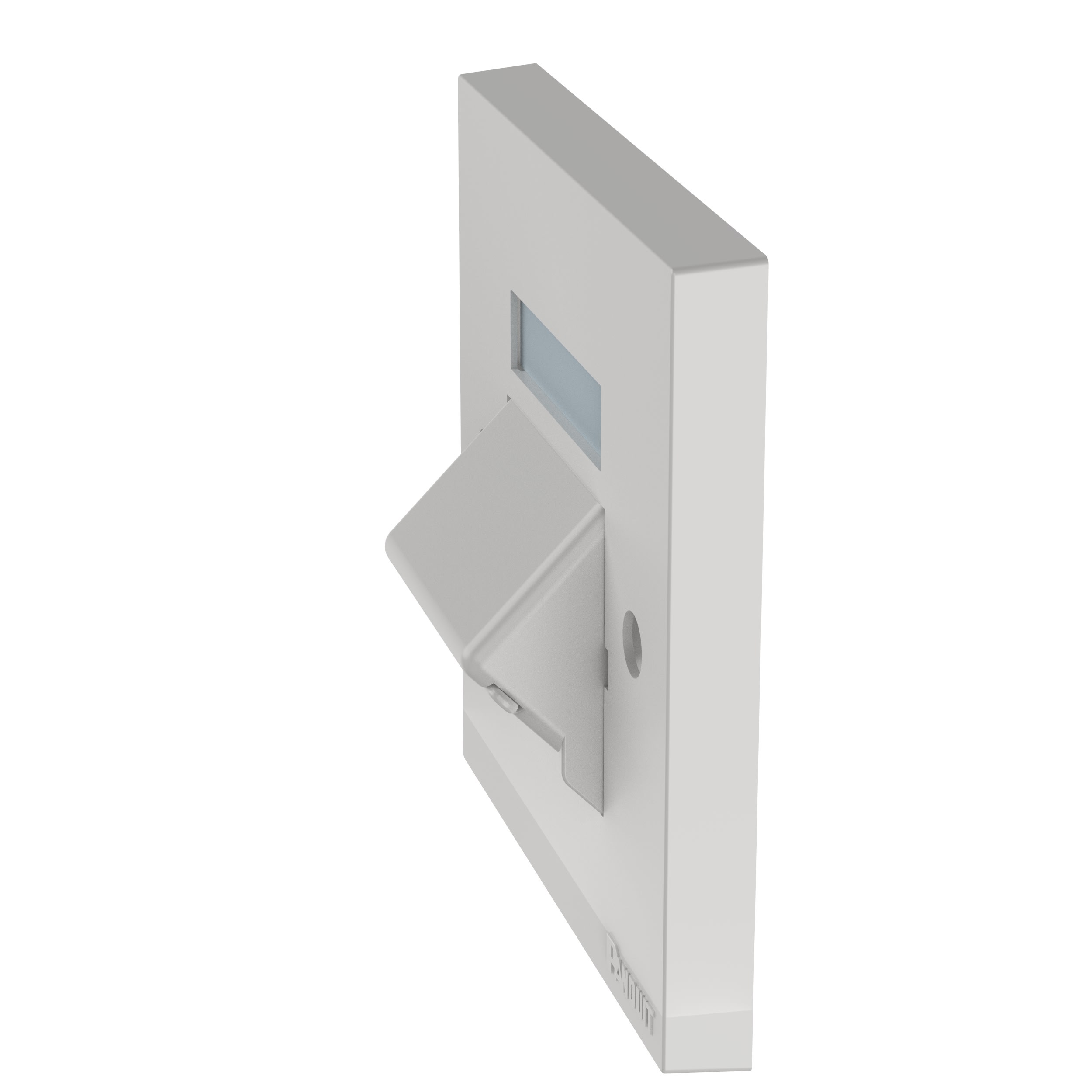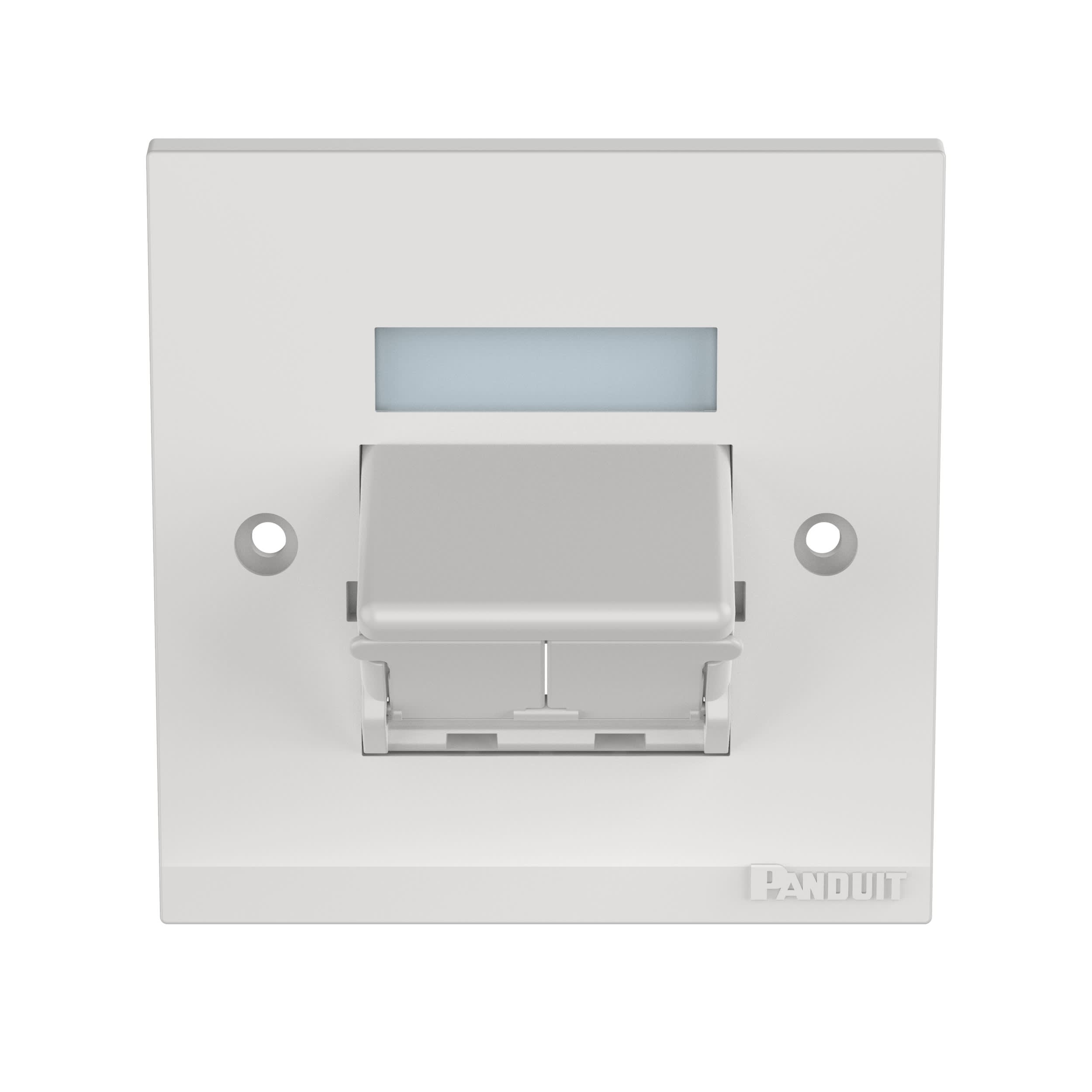 La plaque frontale de 86mm × 86mm Mini-Com™ peut accueillir deux modules Mini-Com. La plaque frontale inclut un cadre et un insert incliné et obturé de demi-taille pour améliorer le rayon de courbure et protéger les modules de la poussière et des débris. La plaque frontale inclut une poche à étiquettes pour une identification facile et est de coloris blanc arctique.