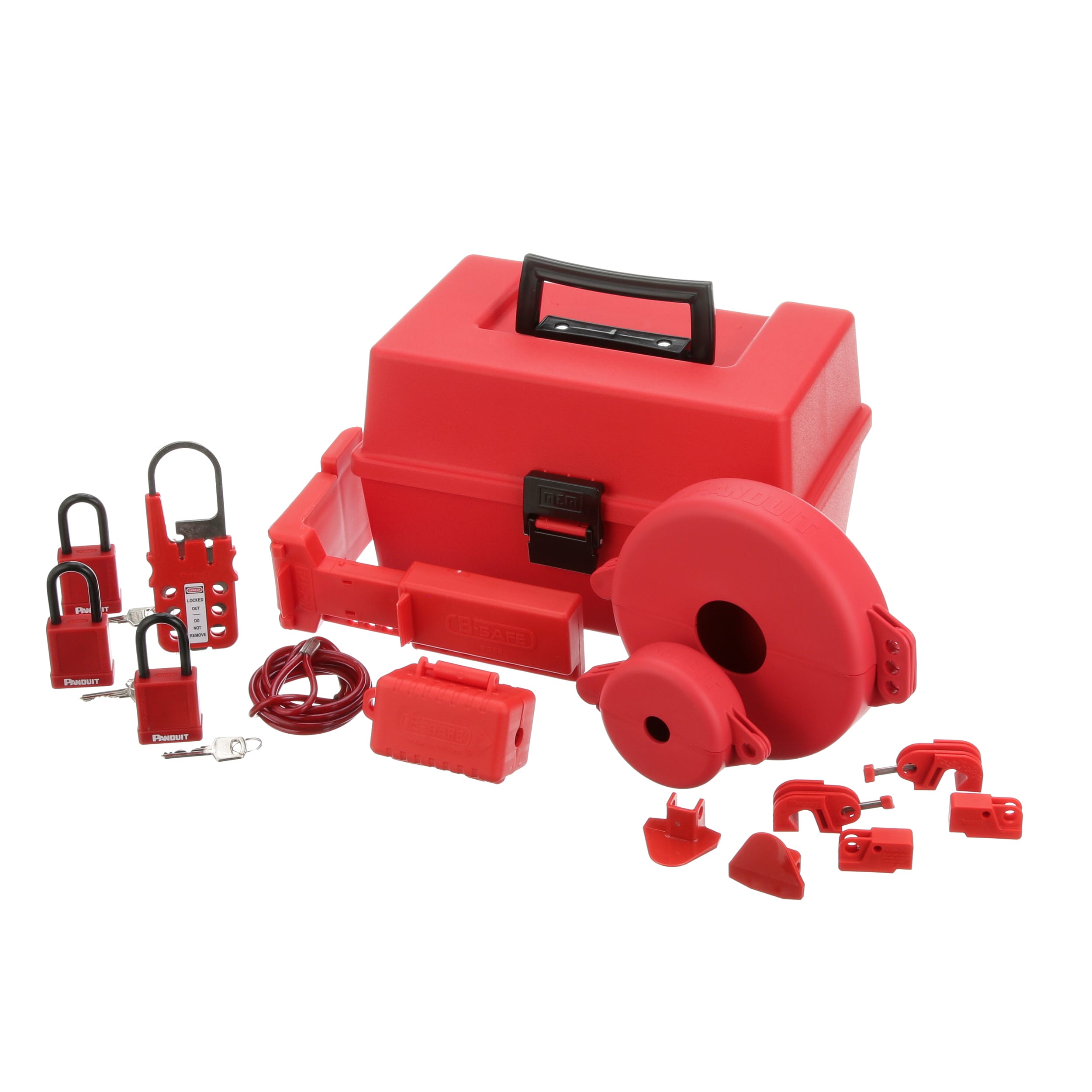 Le kit de verrouillage MRO (entretien, réparation et révision) PSL-KT-MROA Panduit comprend : (1) tournevis, (1) mallette de transport de 165 mm x 127 mm x 368 mm, (3) cadenas non conducteurs PSL-9, (1) disp. de verr. multiple PSL-MLD, (2) disp. de verr. d'interrupteur mural PSL-WS, (2) disp. de verr. de disj. PSL-CBNT, (2) disp. de verr. de prise PSL-P, (1) disp. de verr. de vanne à volant PSL-V2A de 64 mm, (1) disp. de verr. de vanne à boisseau sphérique PSL-BV2 de 76 mm, (1) disp.de verr. de prise 110 V PSL-CL110, (10) étiq. d'entretien « DO NOT OPERATE » (NE PAS ACTIONNER) PVT-44.