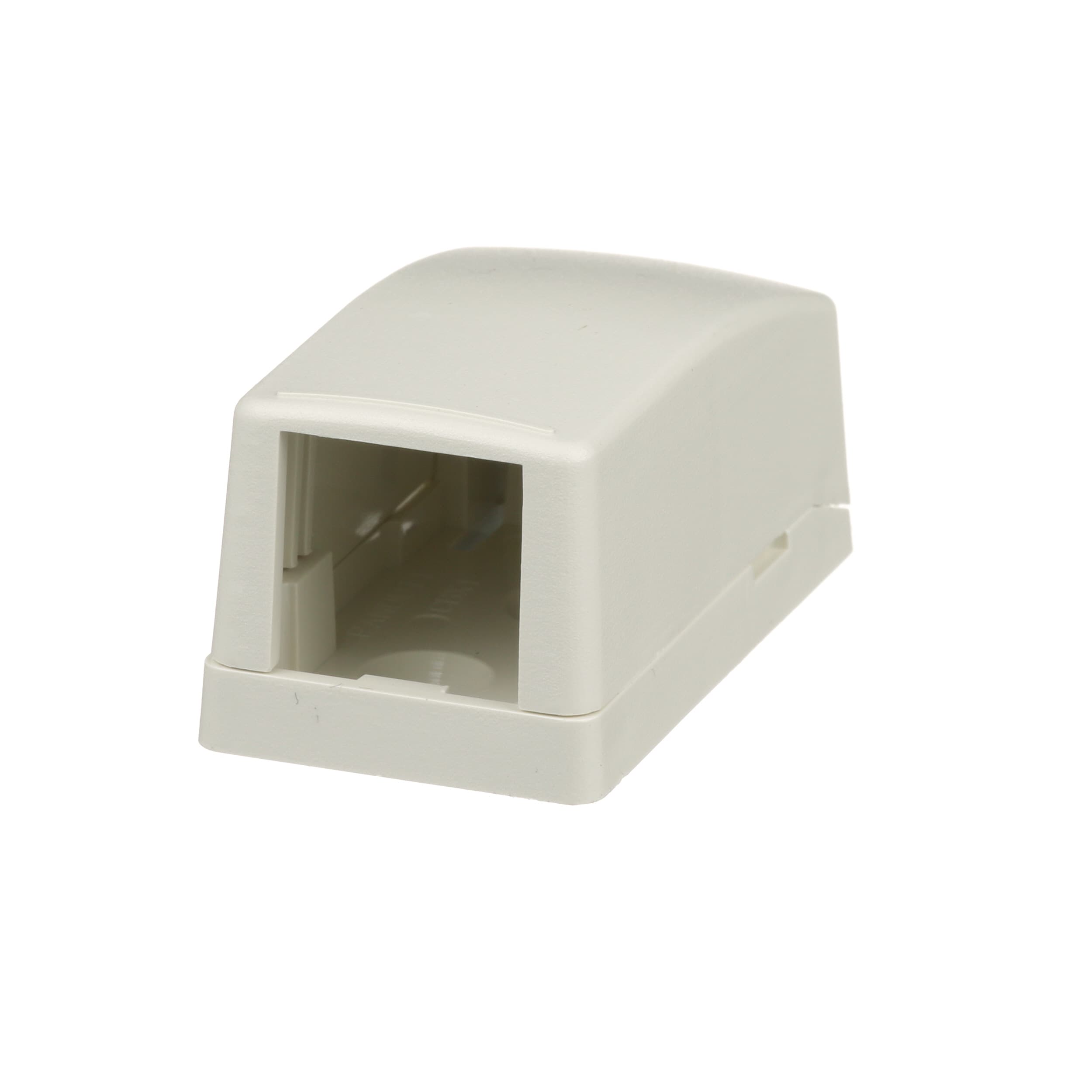 Le boîtier de fixation en saillie Mini-Com™ est homologué pour plénum et peut accueillir un module Mini-Com. Le boîtier offre de nombreuses options de montage utilisant du ruban adhésif ou des vis. Le boîtier peut être identifié à l'aide d'une étiquette adhésive et est de coloris blanc cassé.
