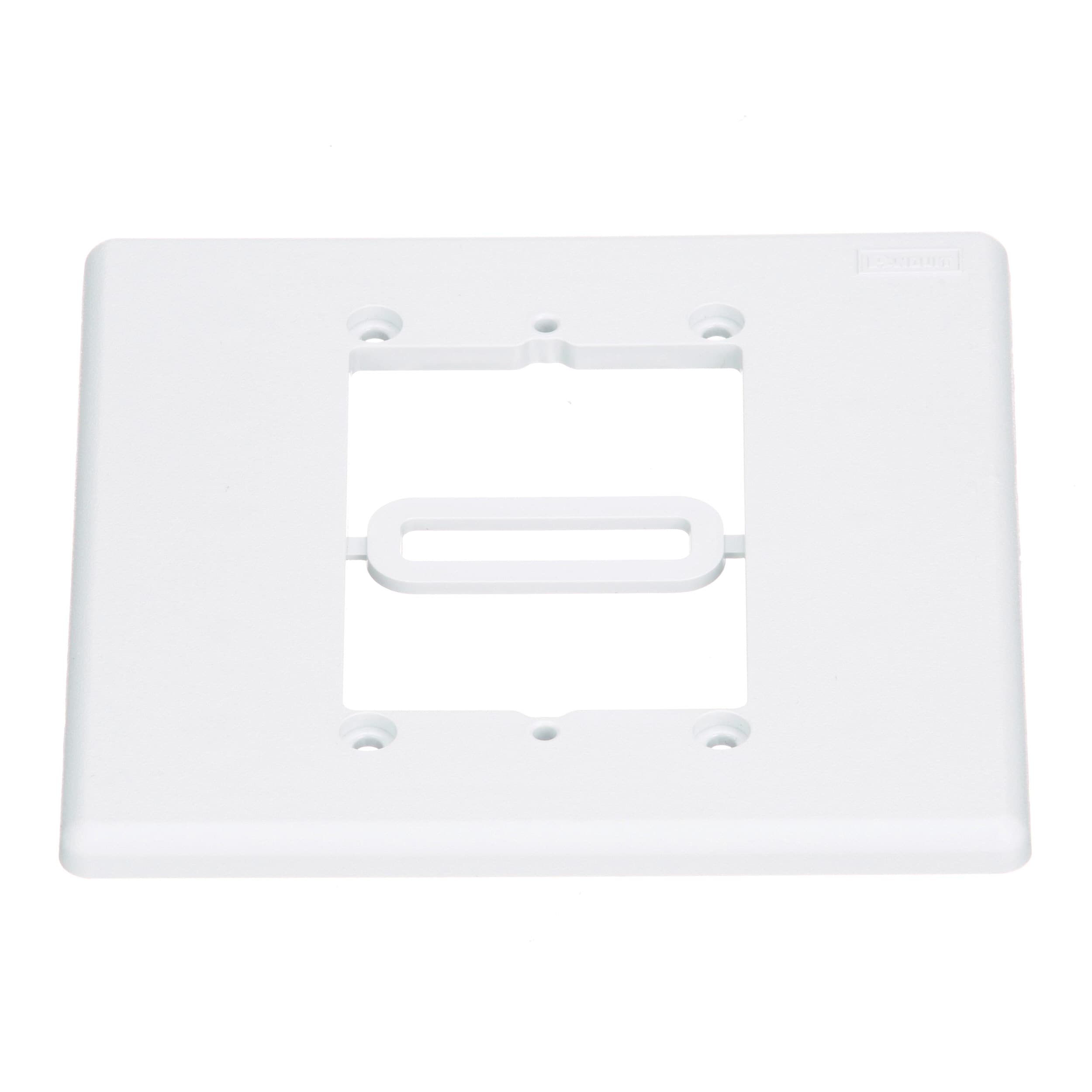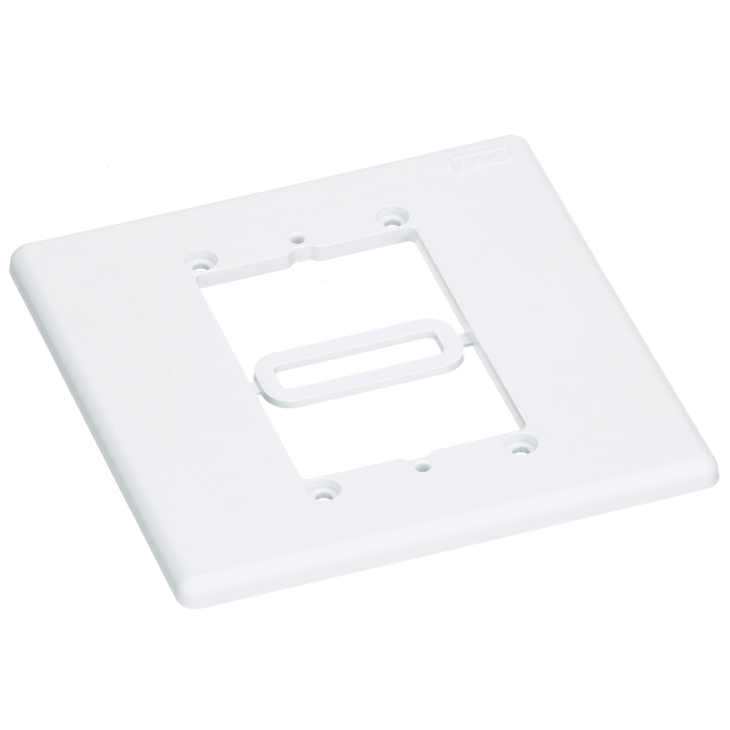 L'adaptateur de boîtier mural réduit une ouverture double à une ouverture simple. Peut être monté dans le sens vertical ou horizontal. Coloris de l'adaptateur : blanc.
