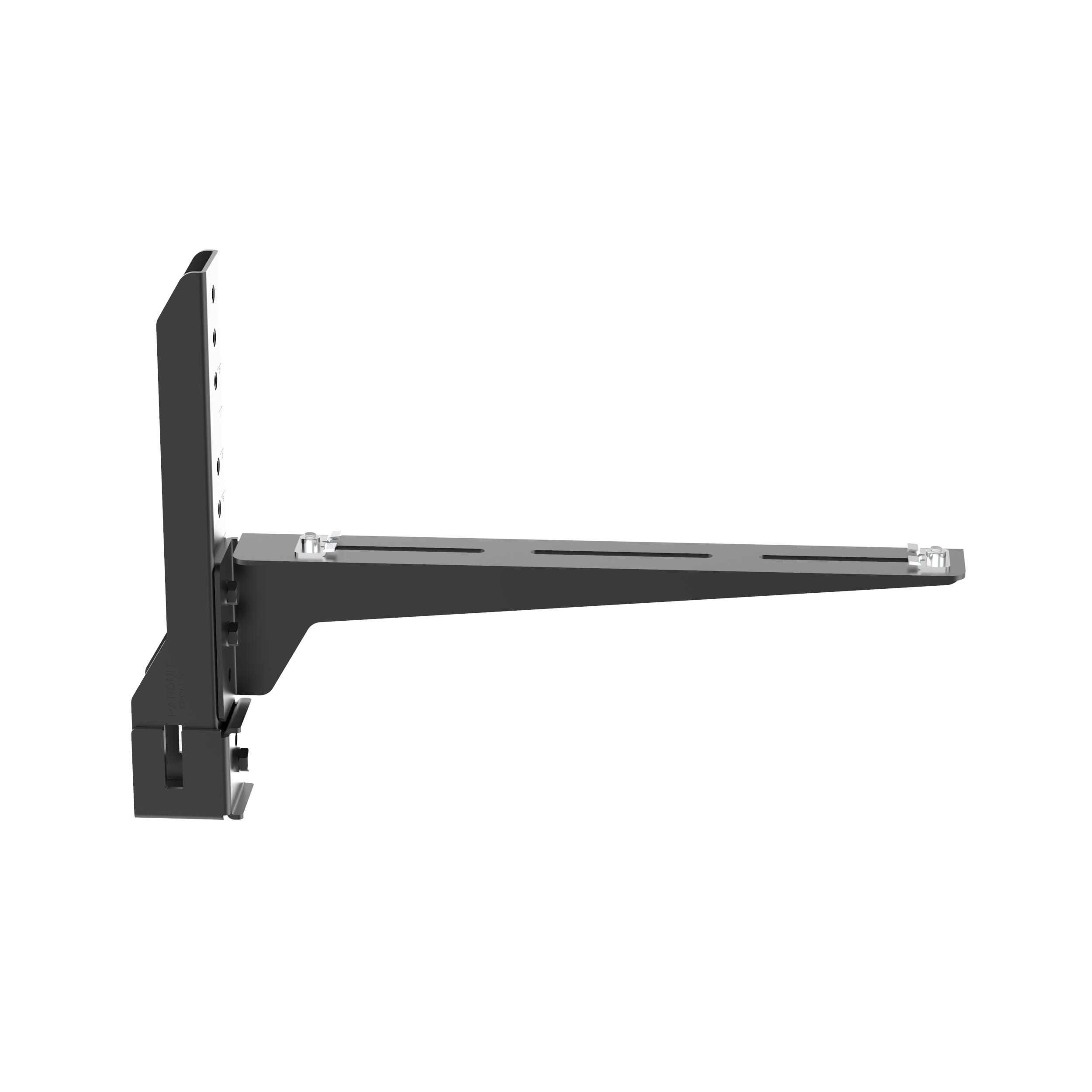 L'équerre à échelle en acier est utilisée dans les systèmes d'acheminement de câbles pour soutenir les systèmes FiberRunner™ 12x4 en se fixant directement aux rails de racks échelle (H 9,5 mm × L 38,1 mm). Ne nécessite pas de tige filetée. Cette équerre à échelle contient le matériel de montage du canal sur l'équerre.