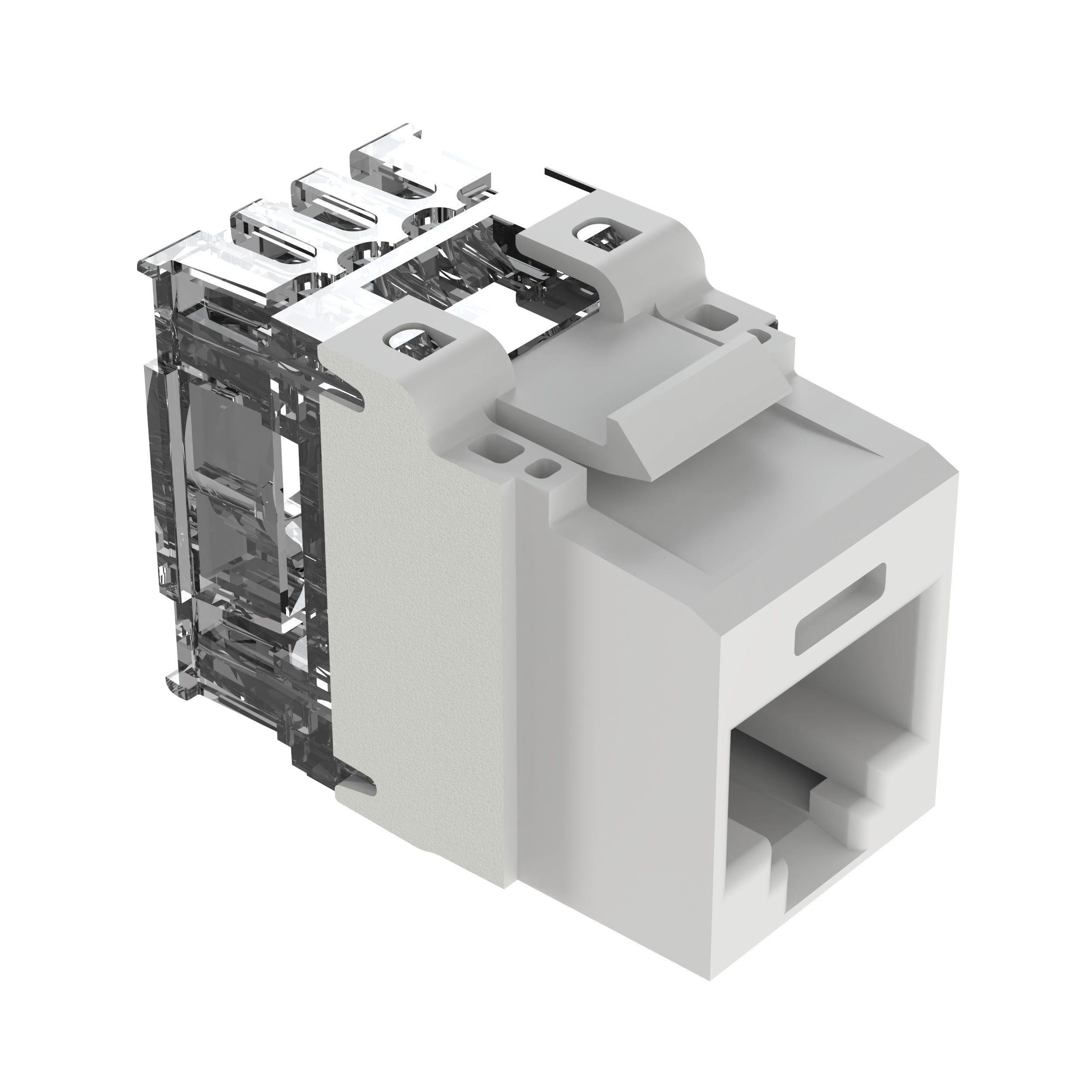 Le module jack keystone à enfichage UTP RJ45 Cat 6A NetKey™ permet de raccorder les câbles à paires torsadées 22-26 AWG 4 paires. Chaque module testé à 100 % en usine pour dépasser les exigences standard du secteur. Les contacts sont plaqués avec 1,3 µm d'or pour une performance supérieure. Jacks avec numéro de série (traçabilité) et compatibles avec les interfaces keystone (plaques frontales NetKey™, panneaux modulaires et boîtes pour embase en surface). Coloris du module jack : blanc arctique.