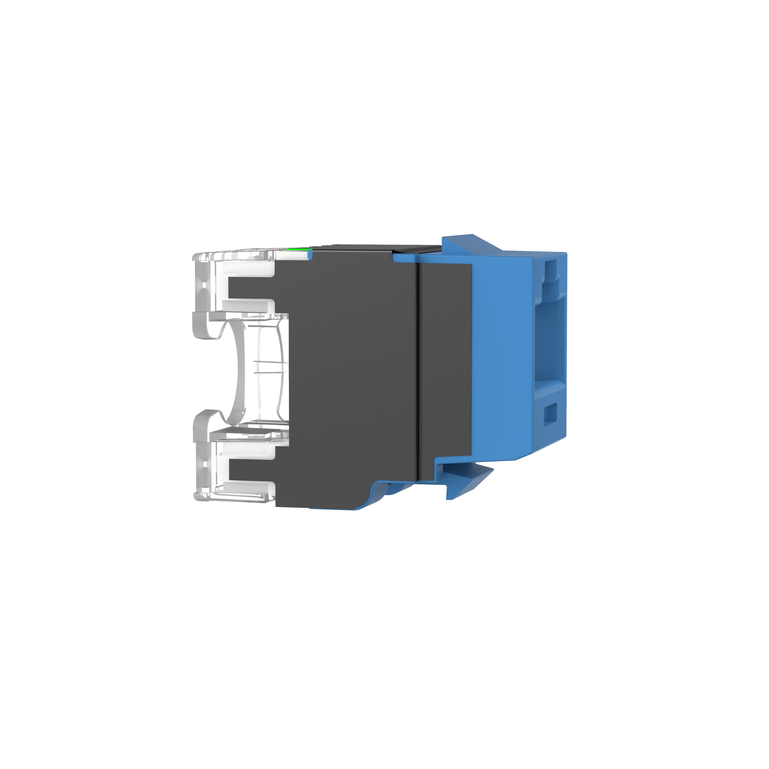 Le module jack keystone à enfichage UTP RJ45 Cat 6A NetKey™ permet de raccorder les câbles à paires torsadées 22-26 AWG 4 paires. Chaque module est testé à 100 % en usine pour dépasser les exigences standard du secteur. Les contacts sont plaqués avec 1,3 µm d'or pour une performance supérieure. Les jacks disposent d'un numéro de série individuel à des fins de traçabilité et sont compatibles avec les interfaces keystone telles que les plaques frontales NetKey™, les panneaux de brassage modulaires et les boîtes pour embase en surface. Coloris du module jack : bleu.