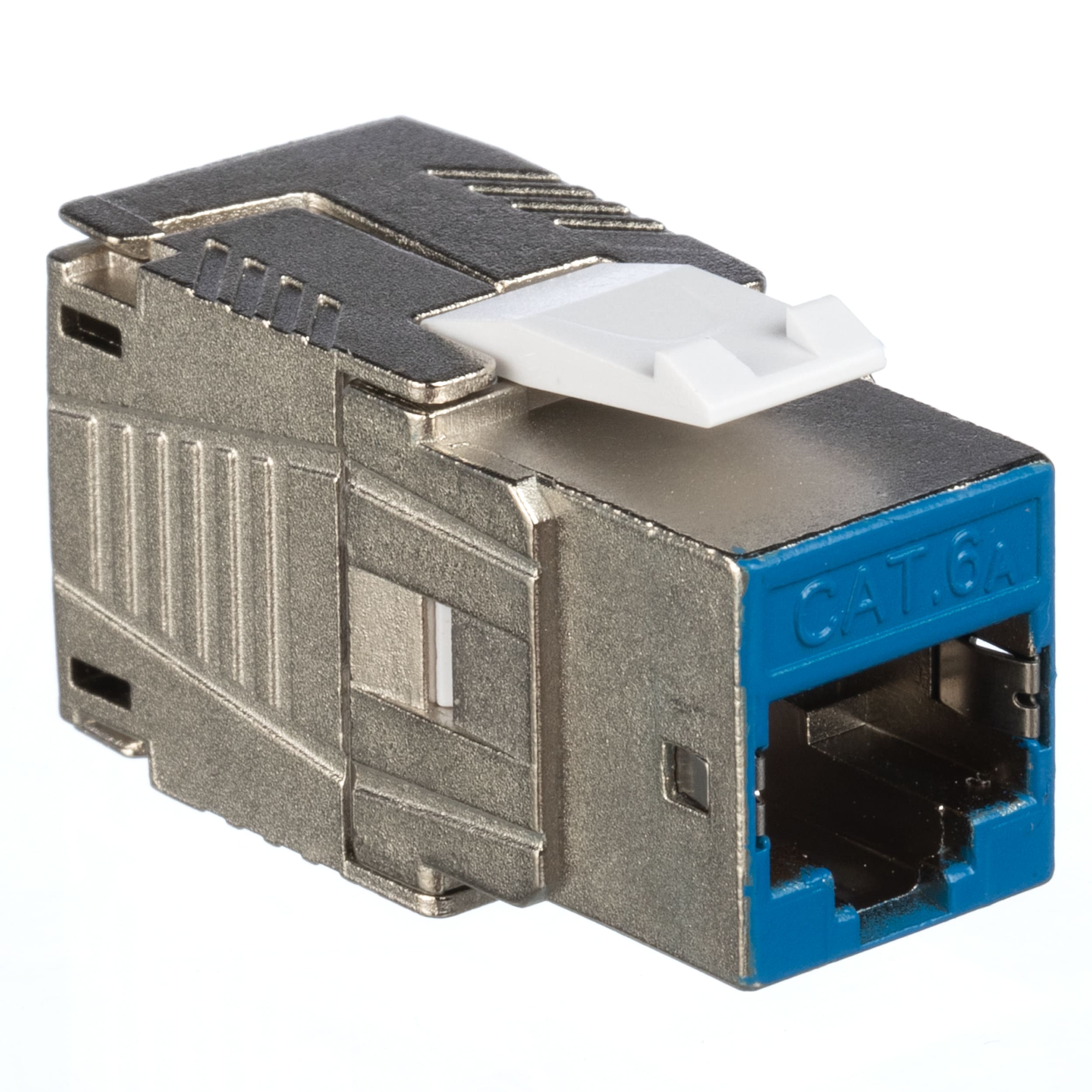 Le module jack Cat 6A blindé RJ45 keystone est conçu pour raccorder un câble protégé à 4 paires torsadées de 22-24 AWG. Les modules jack blindés utilisent une méthode de raccordement avec mouvement vers l'avant pour optimiser les performances. L'étui moulé sous pression est robuste afin d'offrir une protection contre les dommages physiques et électromagnétiques. Coloris du module jack : argent avec partie frontale bleue.