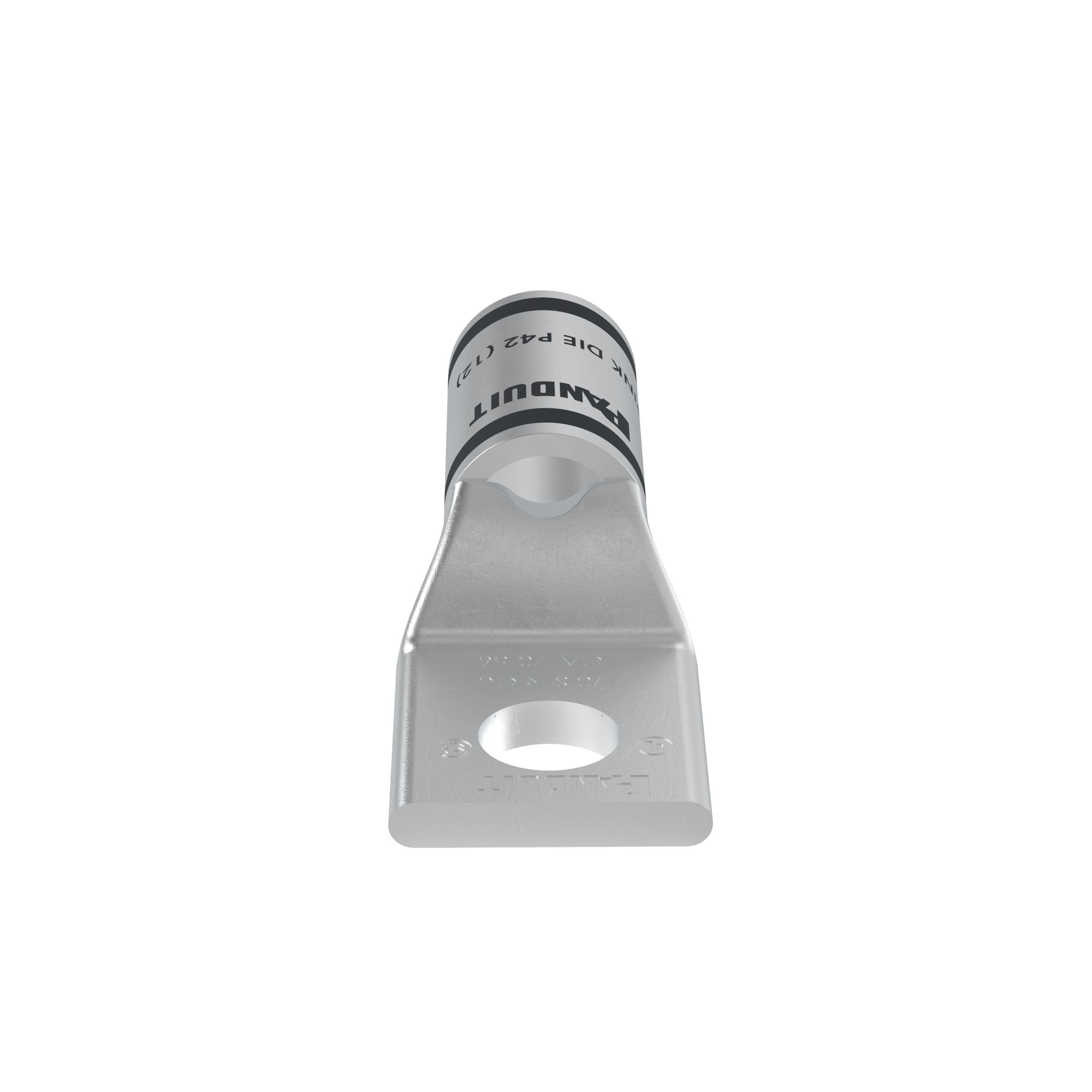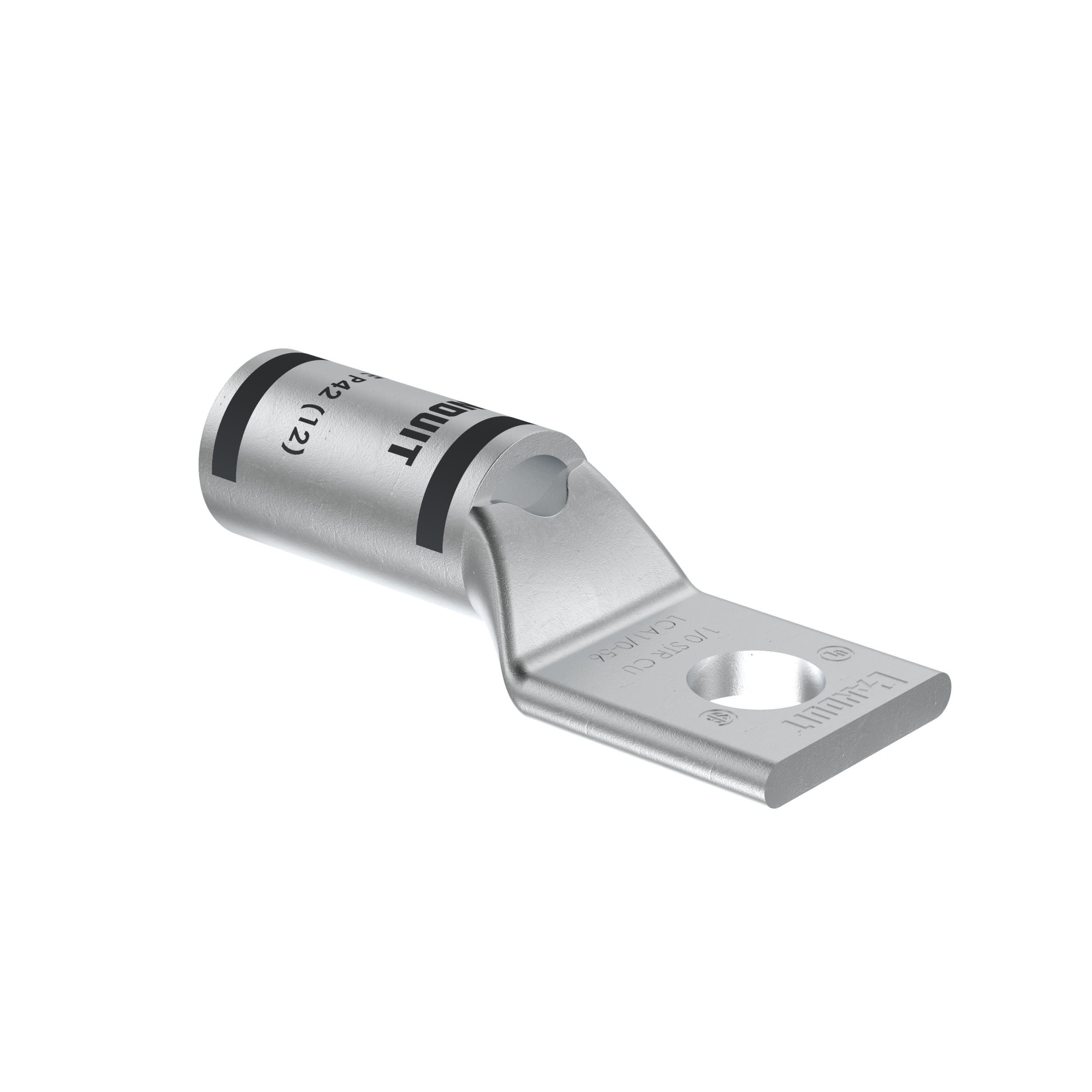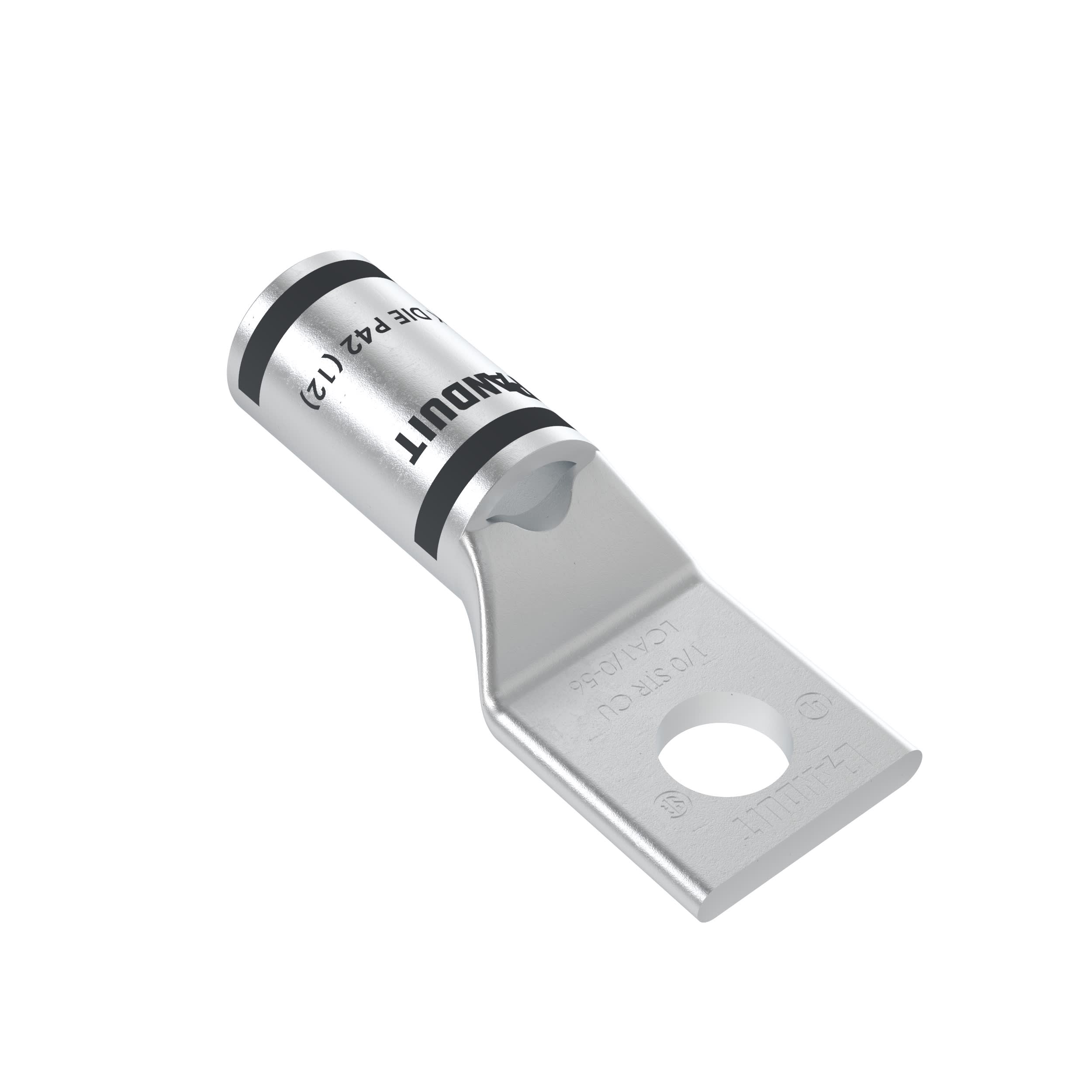 La cosse de compression étamée en cuivre à un trou et fût standard LCA1/0-56-X possède des fûts à codage couleur et marquage avec numéros d'index de matrice Panduit et concurrents pour une sélection de matrice de sertissage adéquate. Une fenêtre d'inspection permet d'assurer visuellement l'insertion complète des conducteurs, et la finition étamée permet d'inhiber la corrosion. Homologué UL et certifié CSA pour 35 kV et température homologuée à 90 °C.