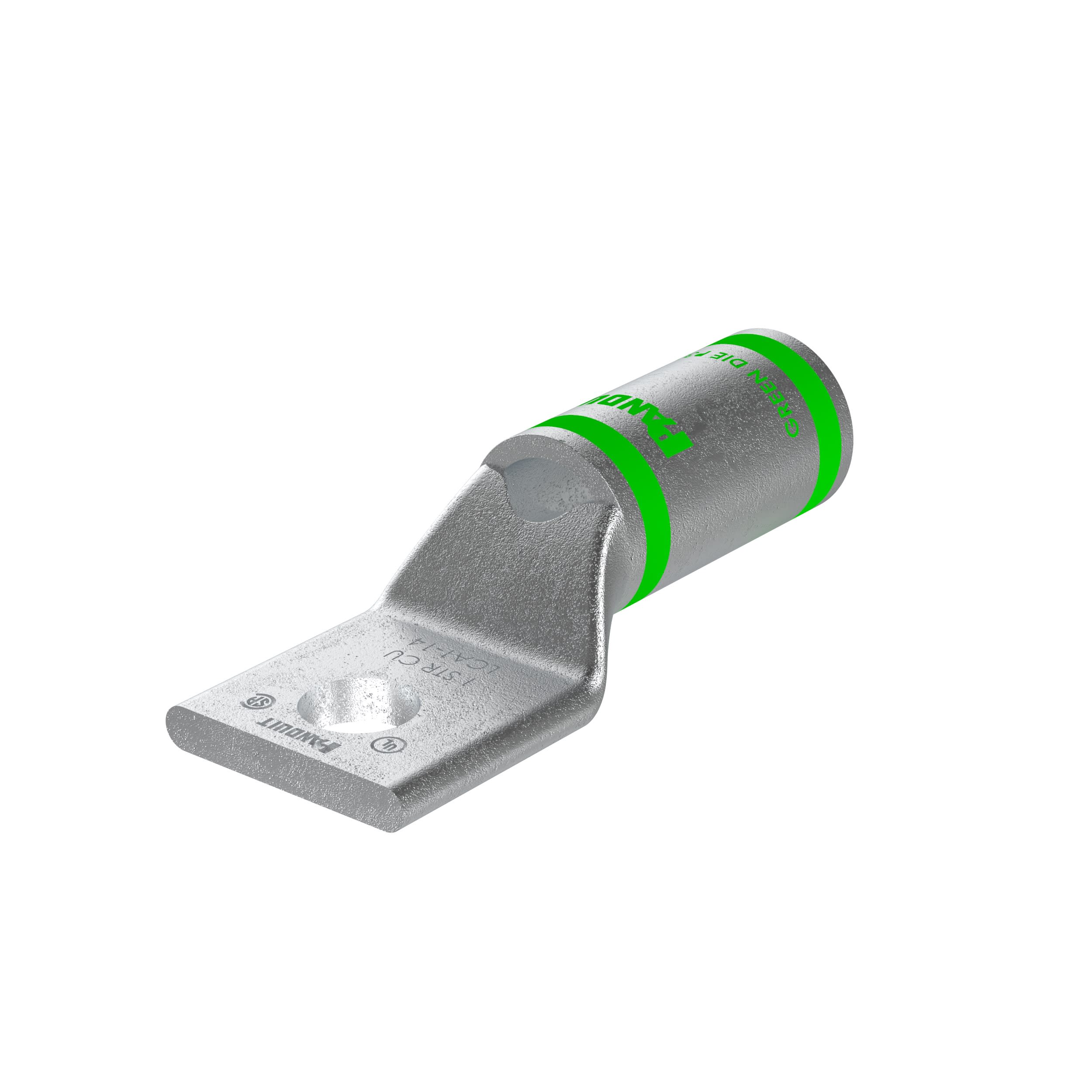 La cosse de compression étamée en cuivre à un trou et fût standard LCA1-14-E possède des fûts à codage couleur et marquage avec numéros d'index de matrice Panduit et concurrents pour une sélection de matrice de sertissage adéquate. Une fenêtre d'inspection permet d'assurer visuellement l'insertion complète des conducteurs, et la finition étamée permet d'inhiber la corrosion. Homologué UL et certifié CSA pour 35 kV et température homologuée à 90 °C.