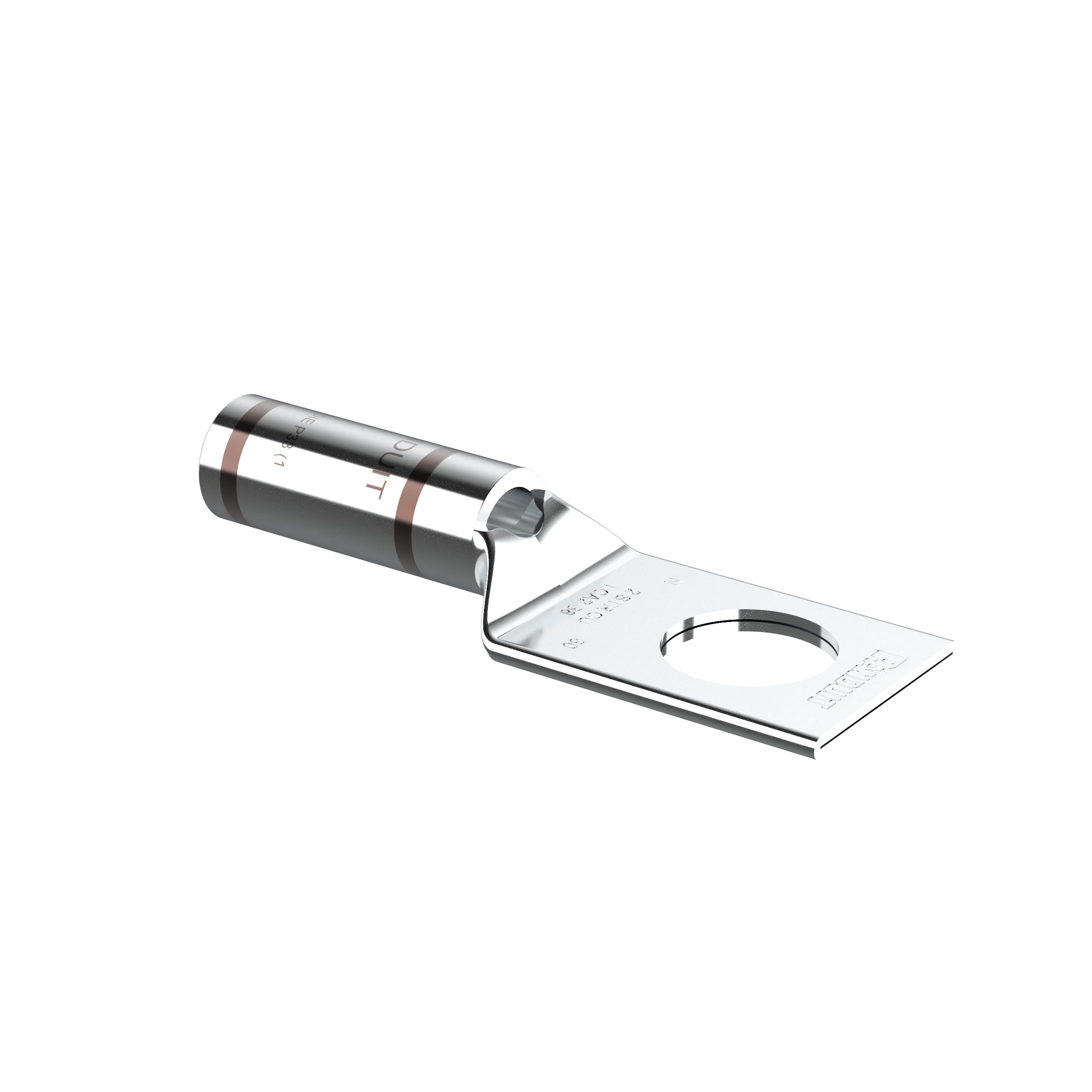 La cosse de compression étamée en cuivre à un trou et fût standard LCA2-38-Q possède des fûts à codage couleur et marquage avec numéros d'index de matrice Panduit et concurrents pour une sélection de matrice de sertissage adéquate. Une fenêtre d'inspection permet d'assurer visuellement l'insertion complète des conducteurs, et la finition étamée permet d'inhiber la corrosion. Homologué UL et certifié CSA pour 35 kV et température homologuée à 90 °C