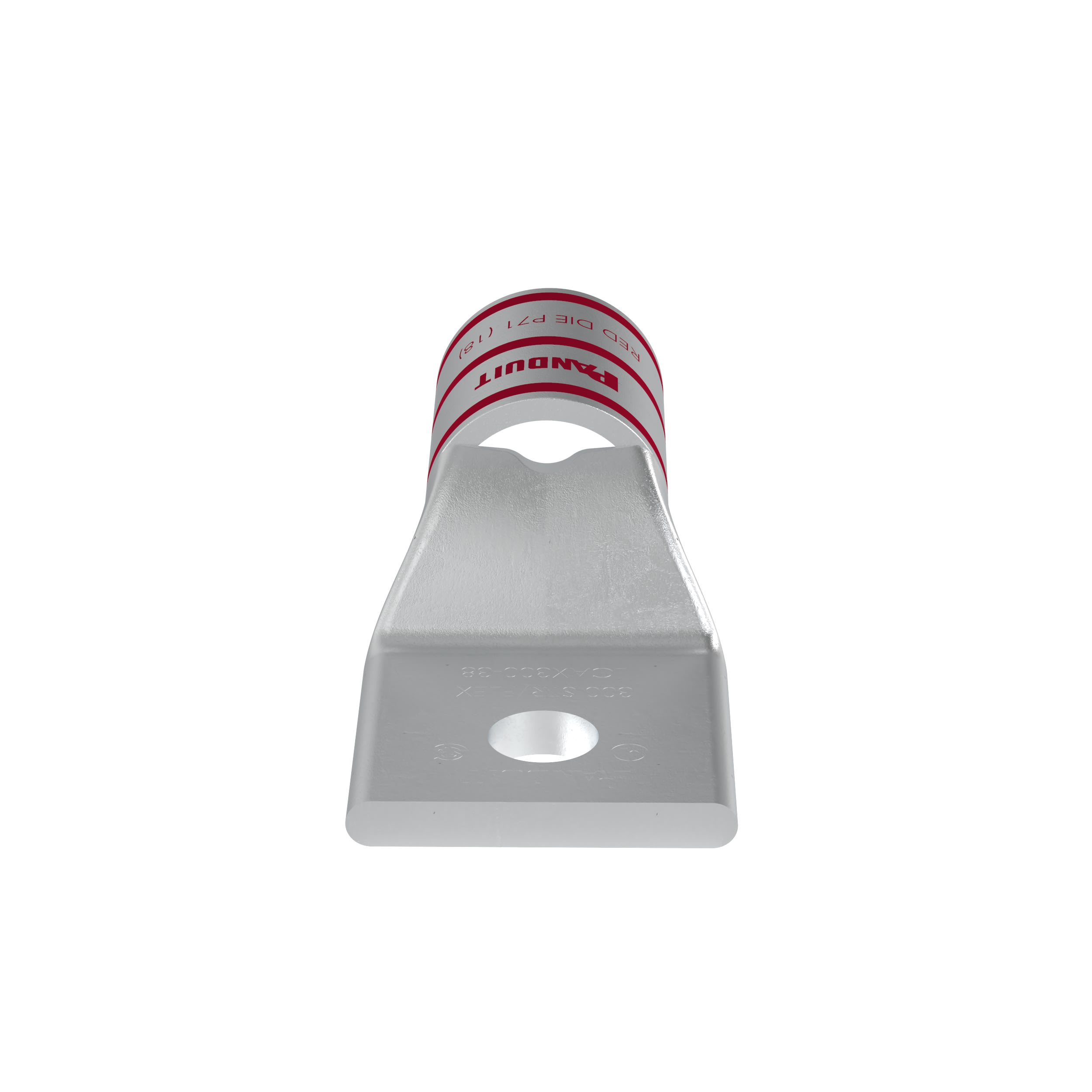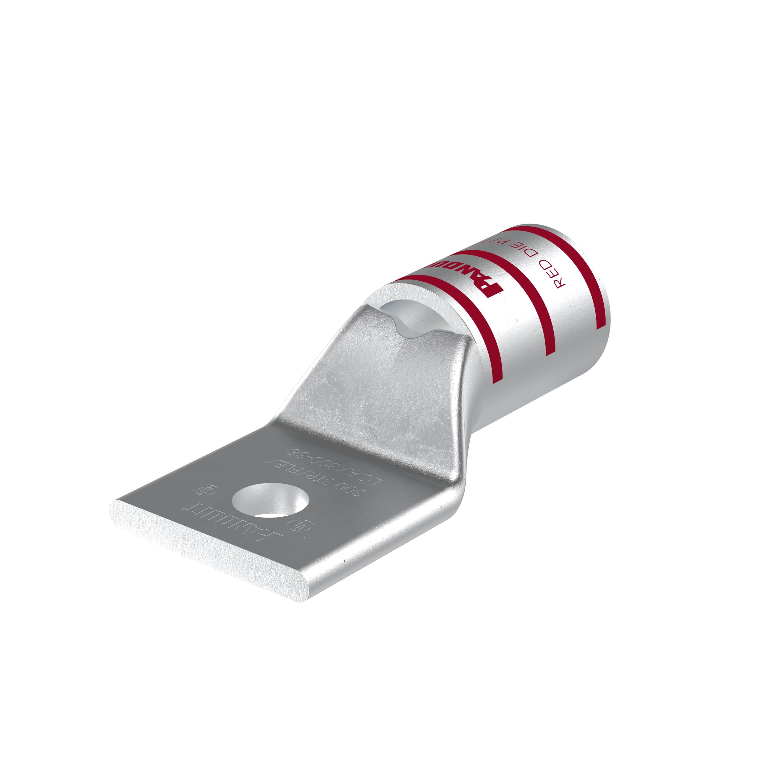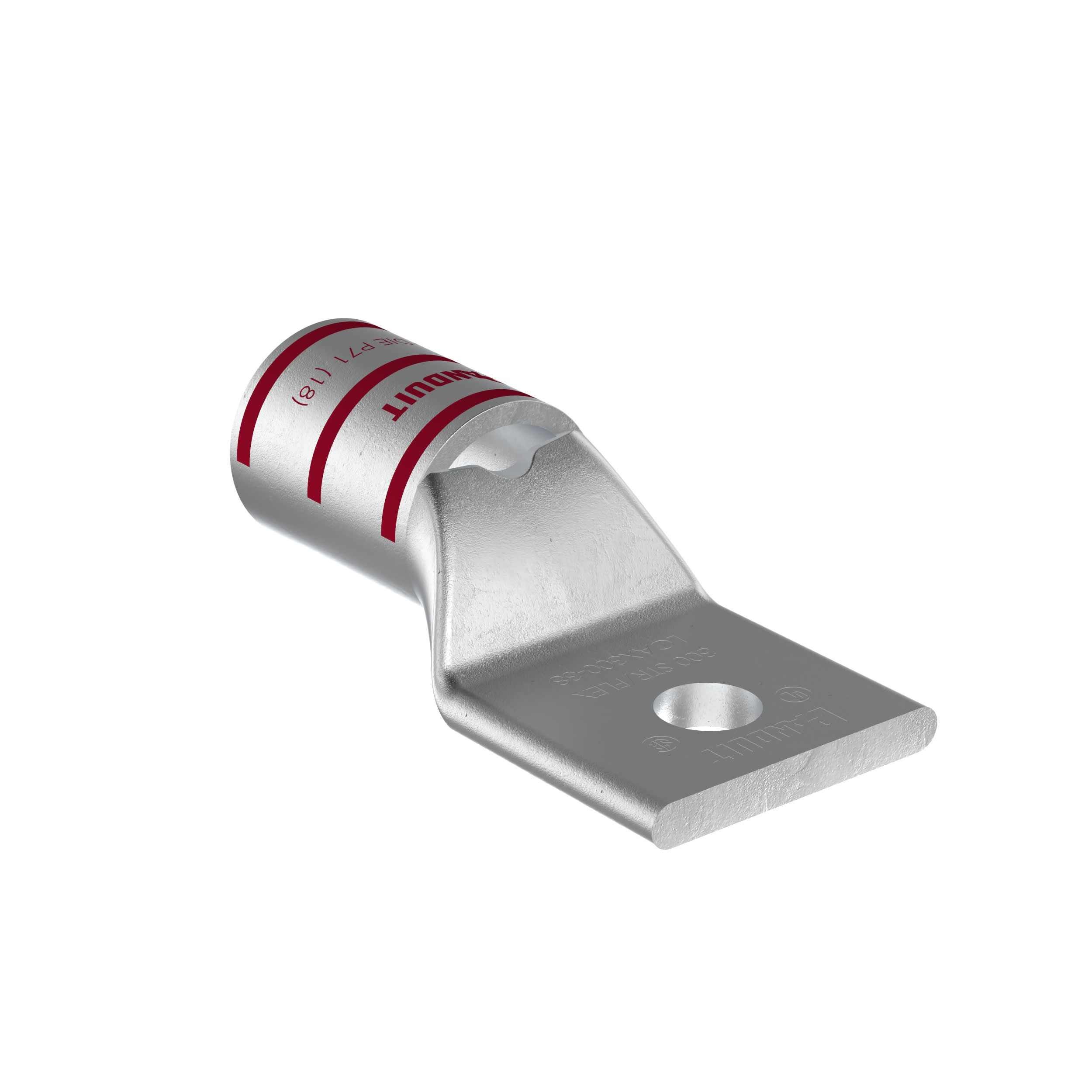 La cosse de compression étamée en cuivre à un trou et fût standard LCAX300-38-6 possède des fûts à codage couleur et marquage avec numéros d'index de matrice Panduit et concurrents pour une sélection de matrice de sertissage adéquate. Une fenêtre d'inspection permet d'assurer visuellement l'insertion complète des conducteurs, et la finition étamée permet d'inhiber la corrosion. Homologué UL et certifié CSA pour 35 kV et température homologuée à 90 °C.