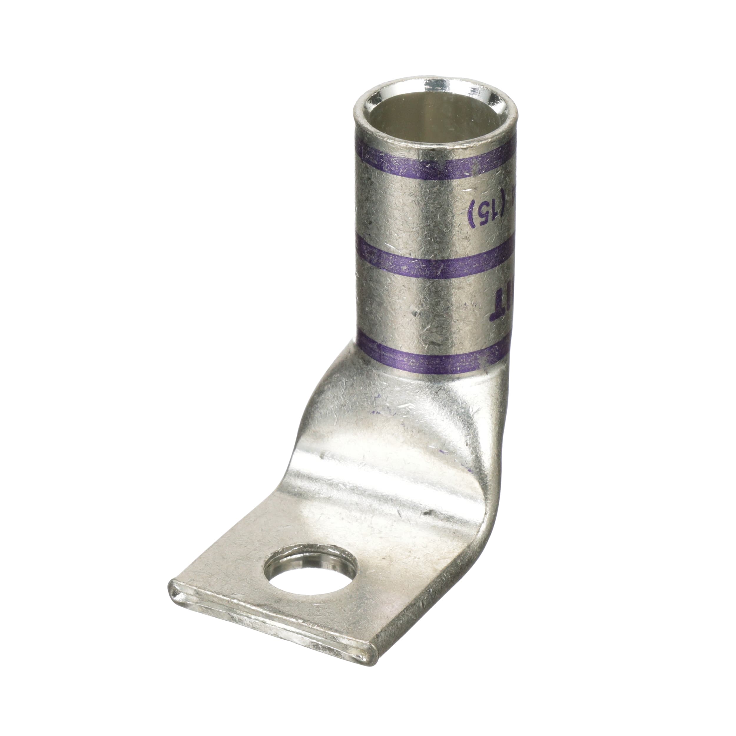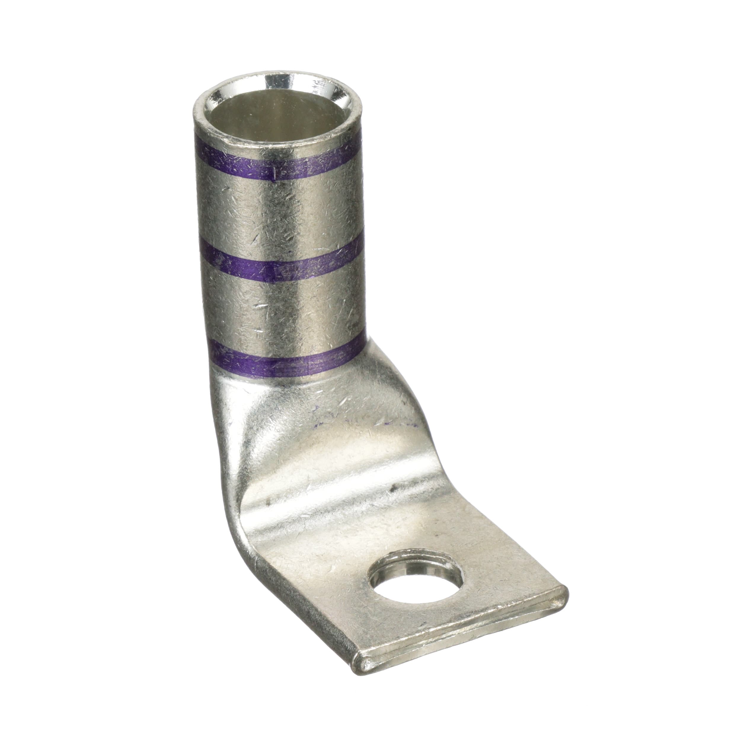 Cosse à un trou à fût standard à fenêtre, fil 4/0 AWG, patte coudée à 90°, trou de goujon 3/8.