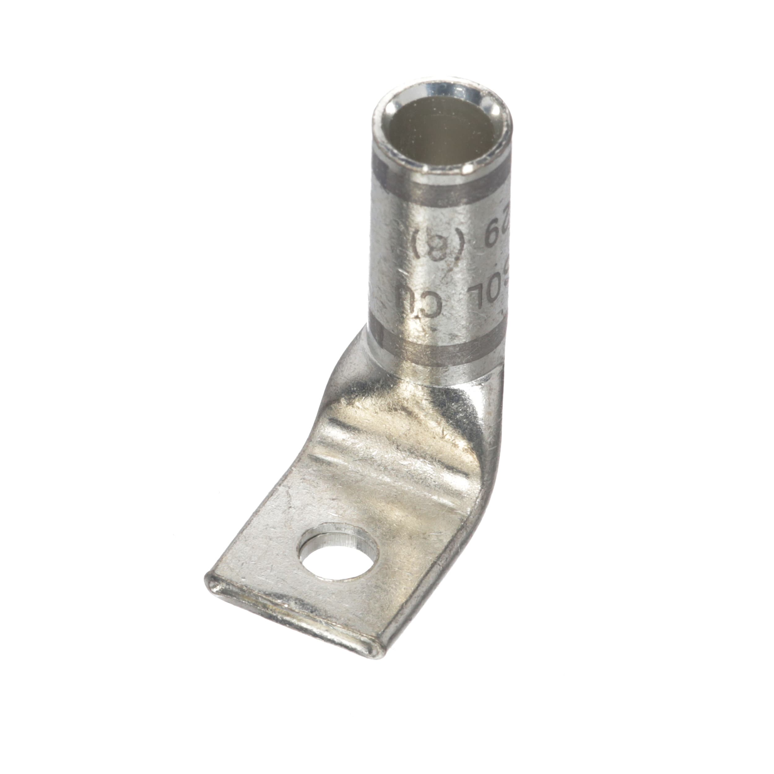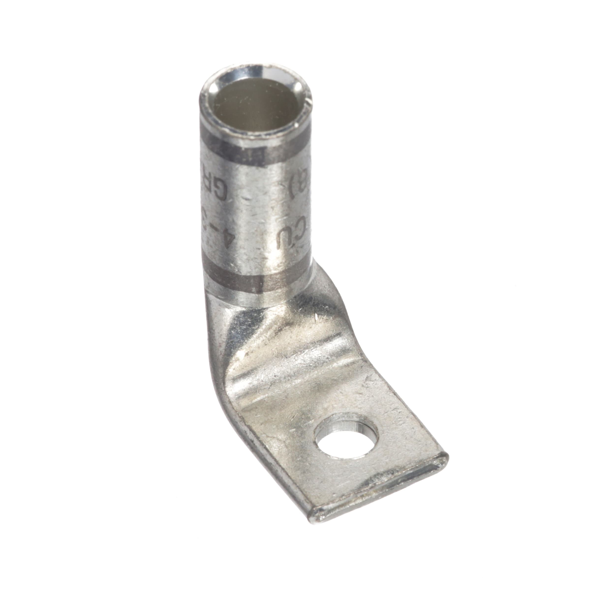 Cosse à un trou à fût standard à fenêtre, fil #4 — #3 AWG STR, #2 AWG SOL, patte à 90°, trou de goujon #10.