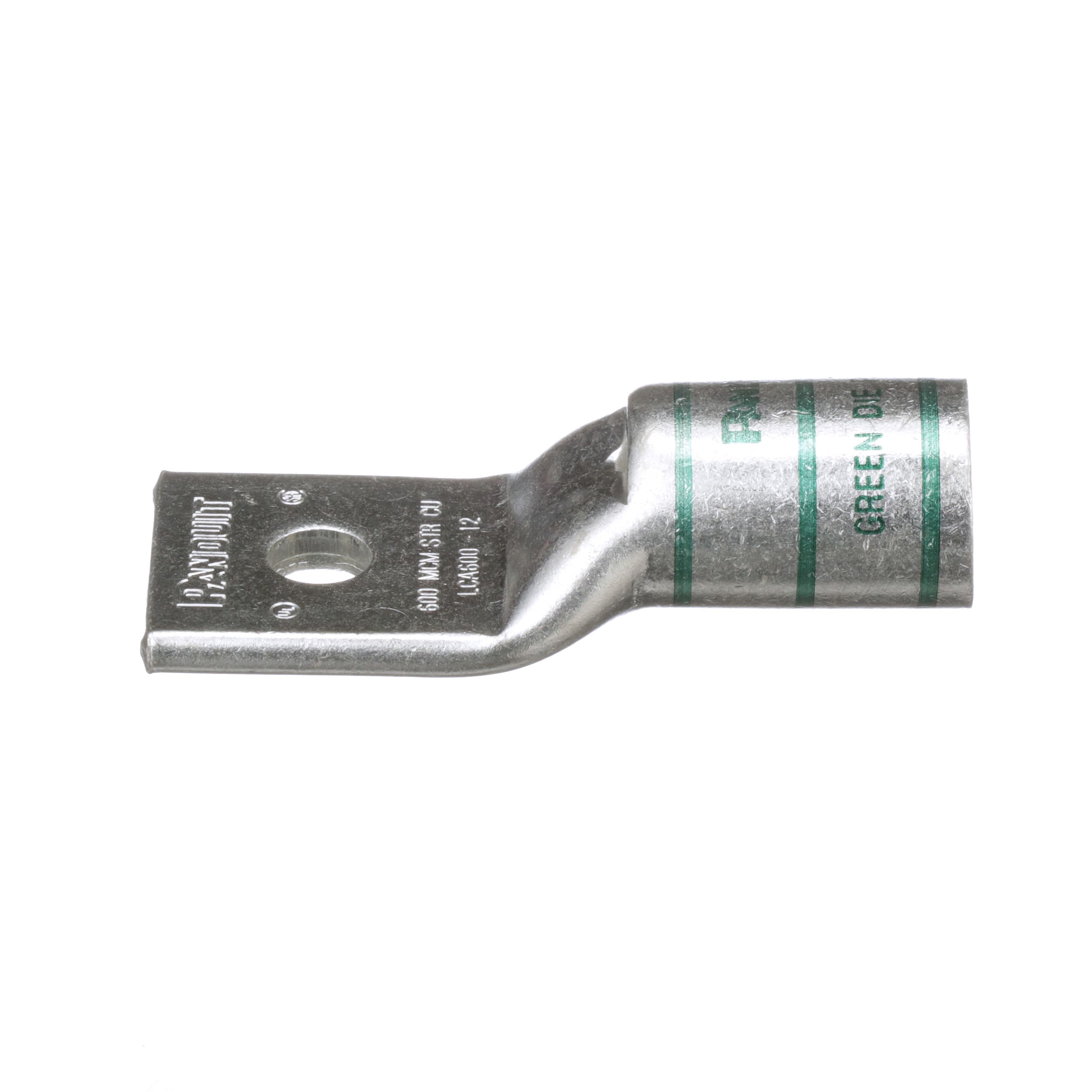 La cosse de compression étamée en cuivre à un trou et fût standard LCA600-12-6 possède des fûts à codage couleur et marquage avec numéros d'index de matrice Panduit et concurrents pour une sélection de matrice de sertissage adéquate. Une fenêtre d'inspection permet d'assurer visuellement l'insertion complète des conducteurs, et la finition étamée permet d'inhiber la corrosion. Homologué UL et certifié CSA pour 35 kV et température homologuée à 90 °C.