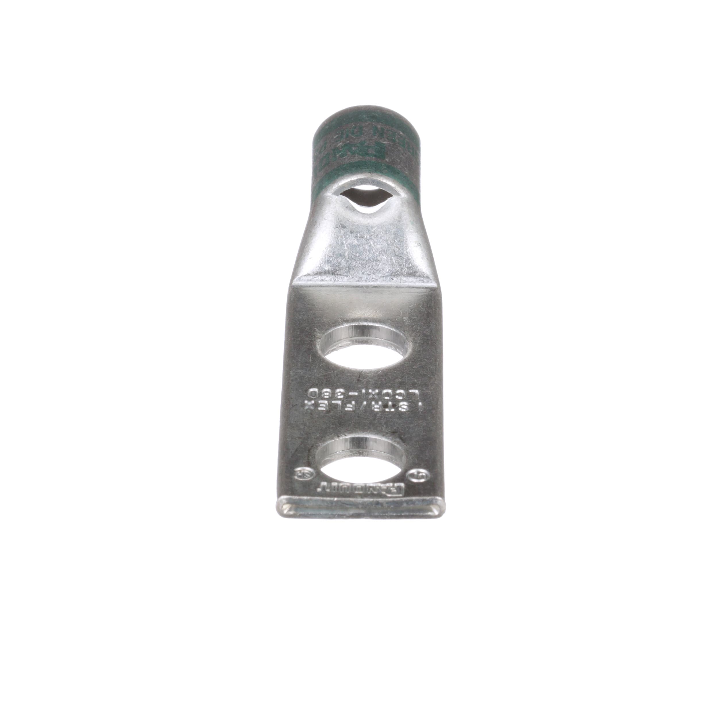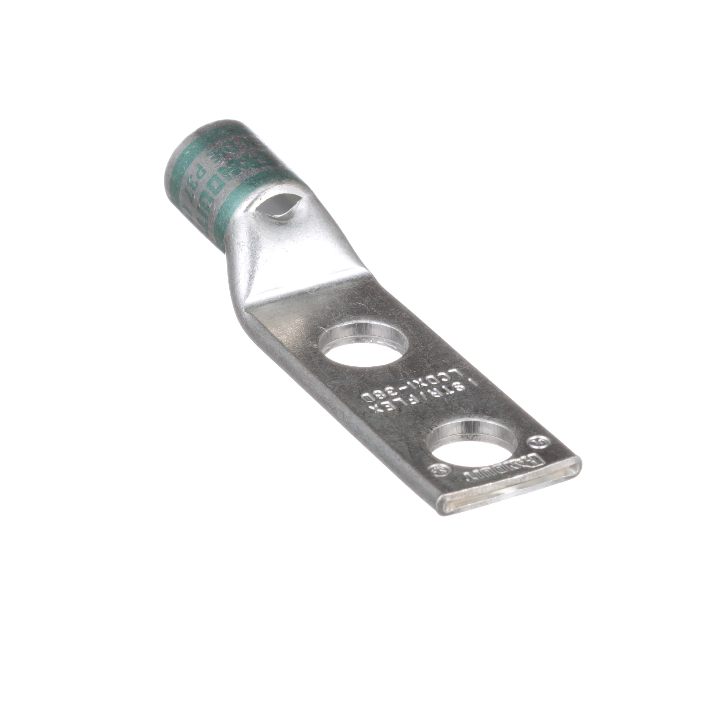 Cosse flex à deux trous, fil #1 AWG, trou de goujon 3/8, espacement de trou 1.