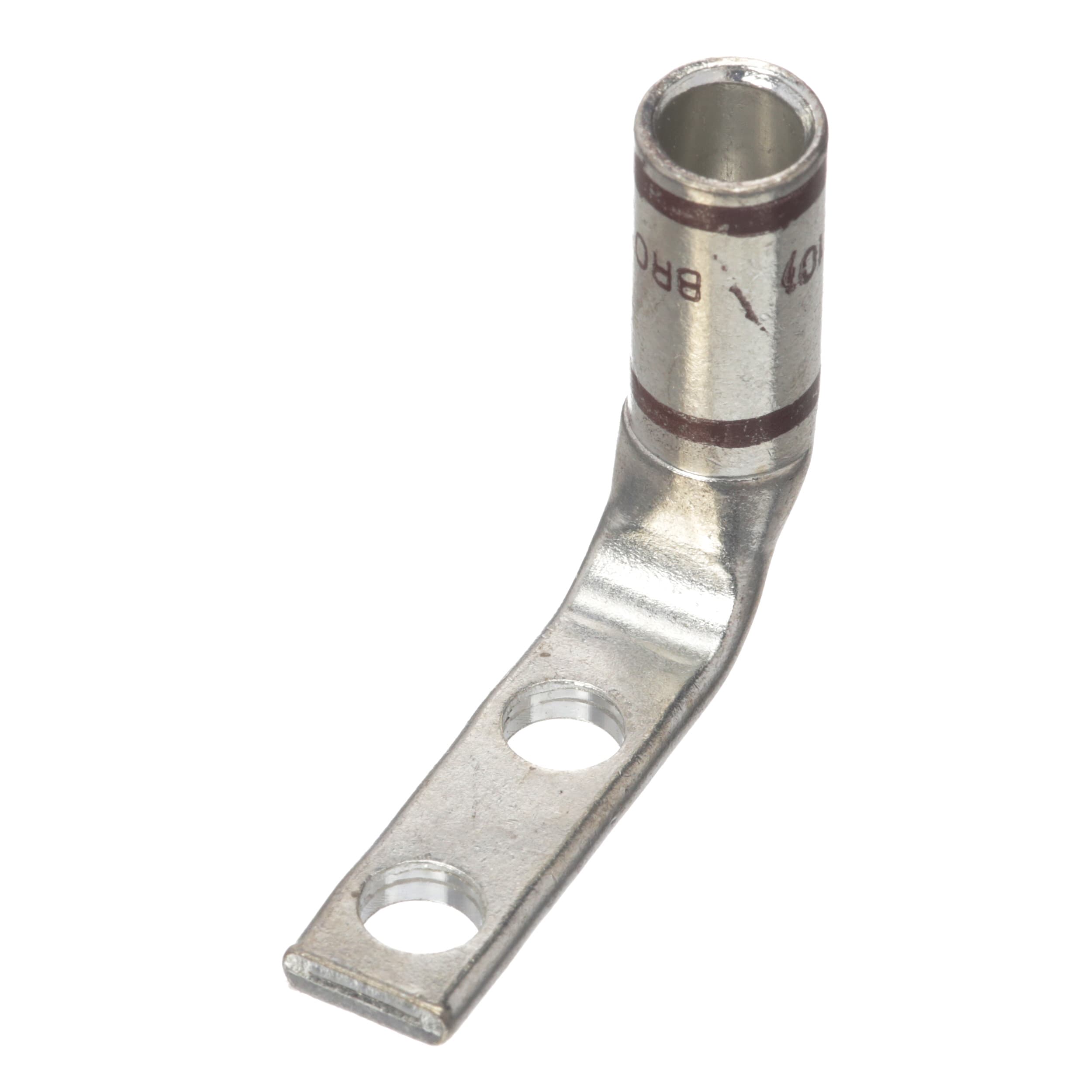 Cosse à deux trous à fût standard à fenêtre, patte étroite, fil #2 AWG, trou de goujon 1/4, espacement de trou 0,63, patte à 90°.