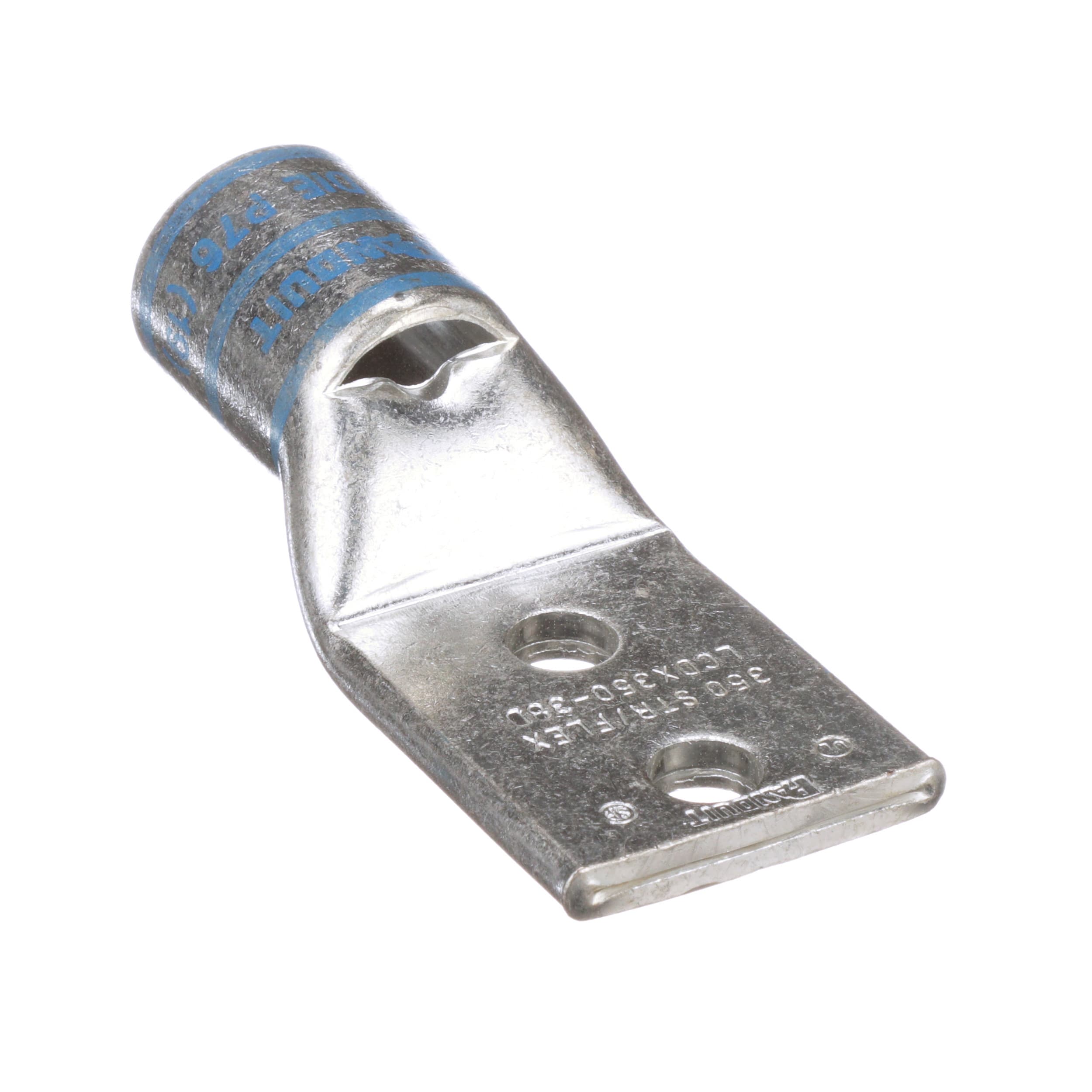 Cosse souple à deux trous, câble 350 kcmil, trou de goujon 3/8, espacement de trou 1.