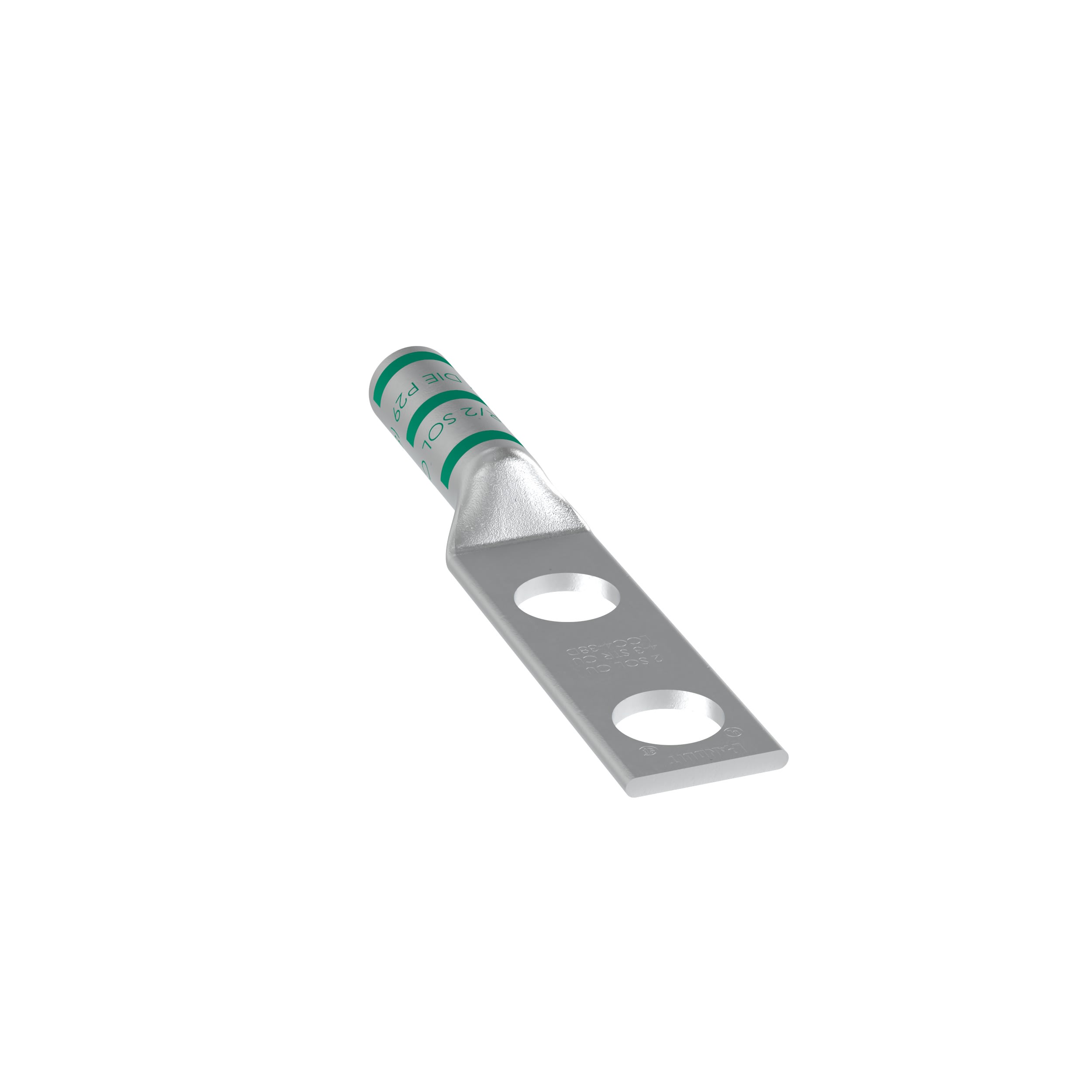 La cosse de compression étamée en cuivre à deux trous et long fût LCC4-38D-L possède des fûts à codage couleur et marquage avec numéros d'index de matrice Panduit et concurrents pour une sélection de matrice de sertissage adéquate. Le long fût maximise le nombre de sertissages et offre une résistance à l'arrachement et des performances de premier ordre. L'entrée de fil généreusement biseautée empêche le recourbement des torons lors de l'insertion du conducteur dans le fût. Homologation UL, certification CSA