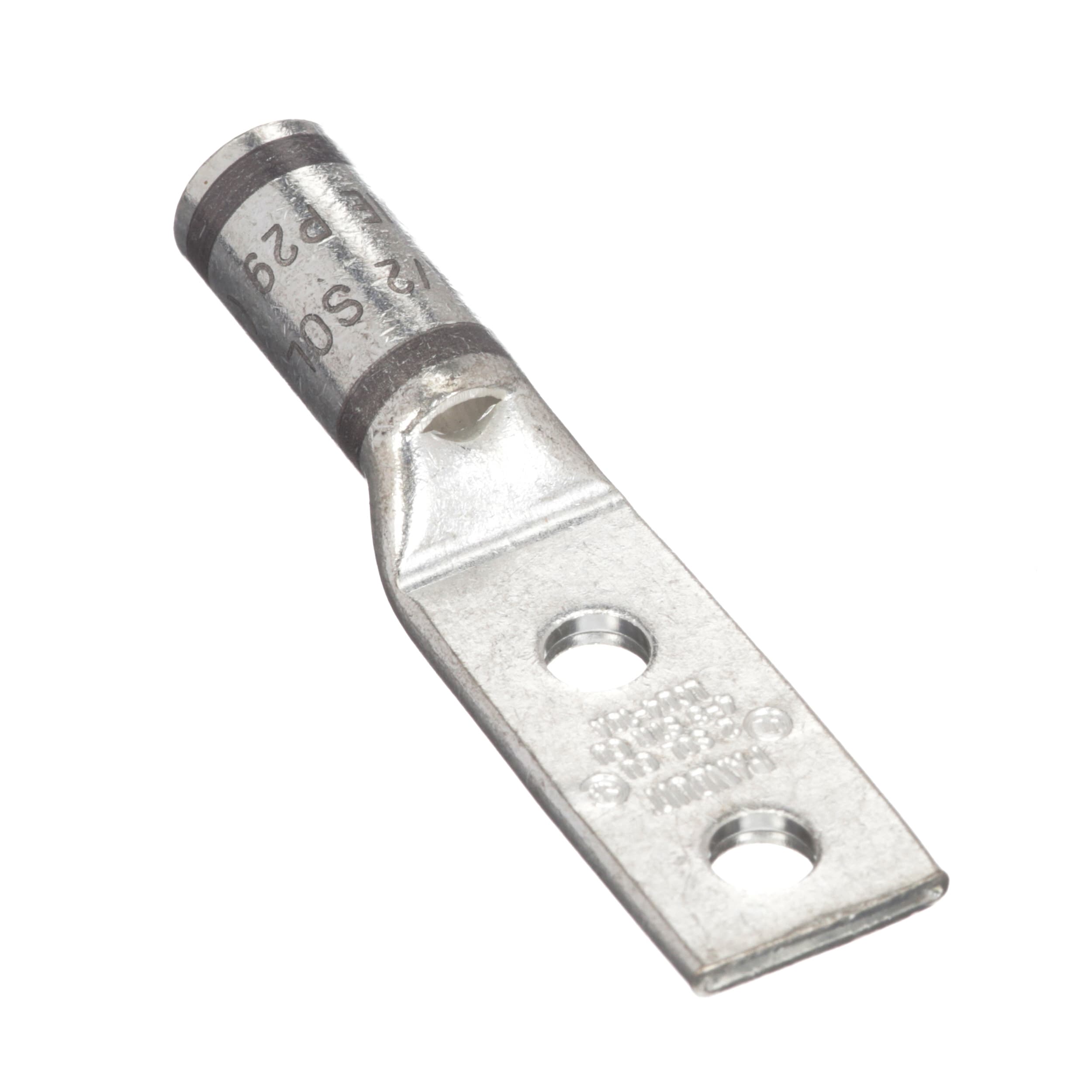 Cosse à deux trous à fût standard à fenêtre, #4 — #3 AWG STR, #2 AWG SOL, trou de goujon #10, espacement de trou 0,63.