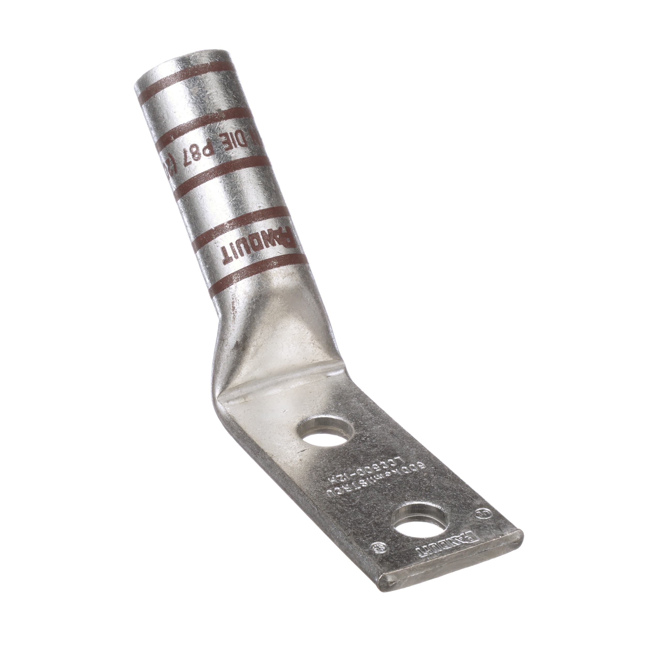Deux trou, long baril Cosse, 500 kcmil fil, 1/2 "trou goujon, 1 3/4" espacement trous, 45º plage de Raccordement.